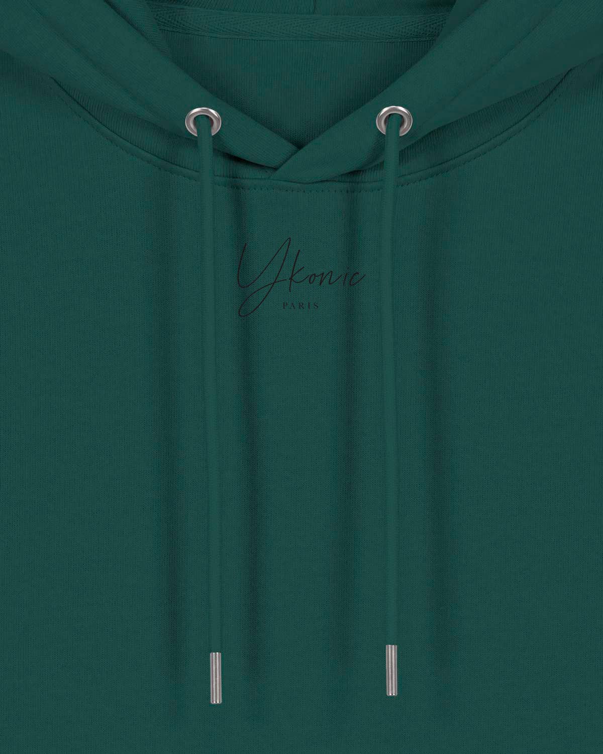 DESCRIPCIÓN * Mangas montadas * Capucha forrada en el mismo material * Cordones redondos en el mismo material * Puntas metálicas cerradas y ojales metálicos * Cinta de limpieza interior en el cuello en espiga * Media luna en el mismo material en la parte posterior del cuello * Costura doble centrada en el dobladillo, los puños y las sisas * Puños y dobladillo de canalé 1x1 * Bolsillo canguro en la parte delantera COMPOSICIÓN Exterior: Felpa cepillada, 100% algodón – Ring Spun Combed orgánico / Heather Haze: 80% algodón orgánico – 20% algodón reciclado, Ring Spun Combed, Tejido lavado COLOR: WORKER BLUE