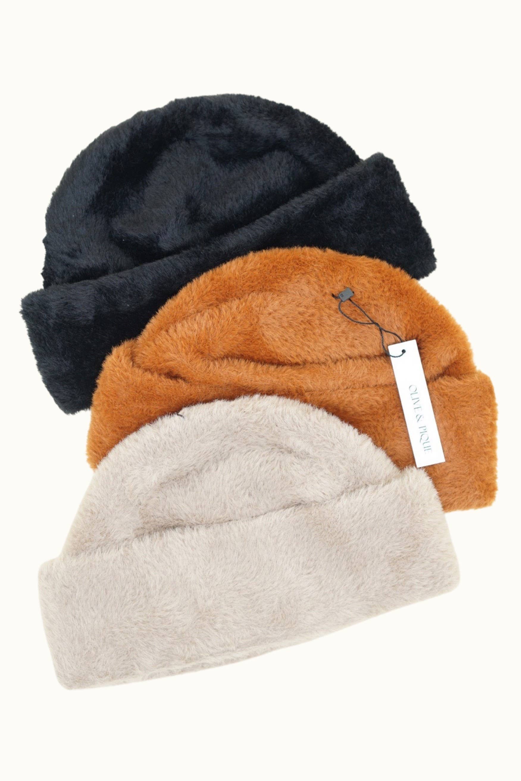 Los gorros peludos son de alta calidad y tienen un peso muy agradable. El gorro/envuelto versátil es más fino de lo esperado, pero especialmente me encanta el color azul polvoriento.
