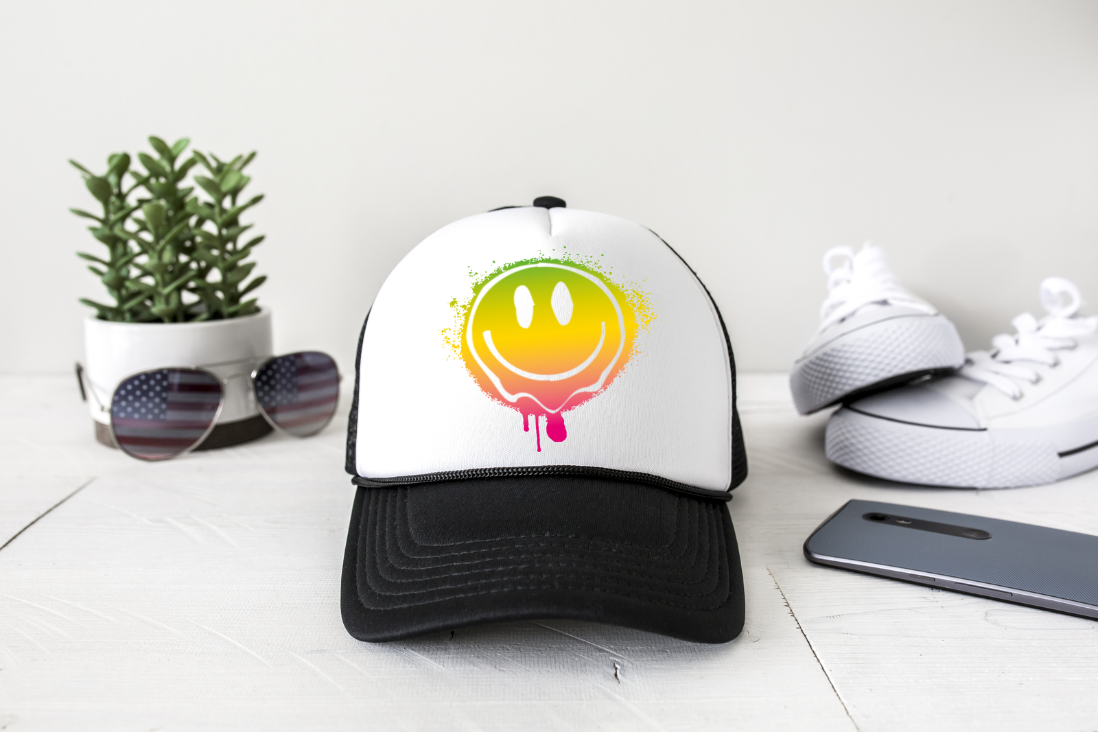Parte delantera y pico 100% poliéster Parte trasera de malla 100% nylon Perfil alto con borde plano Cinco paneles Estructurado Panel frontal de espuma Cierre a presión de plástico Este gorro es unisex de talla única, la parte trasera tiene un cierre de plástico para que puedas ajustar el tamaño. Los pedidos se producirán y enviarán en un plazo de 3 a 7 días hábiles; sin embargo, normalmente producimos y enviamos en un plazo de 24 a 48 horas cuando no es una época ajetreada del año. Si el pedido ya se ha producido o enviado, no podemos aceptar una cancelación, ya que todos nuestros diseños son permanentes y no se pueden deshacer. POLÍTICA DE DEVOLUCIONES ***No aceptamos devoluciones ni cambios*** Muchas gracias por apoyar a nuestra pequeña empresa familiar,