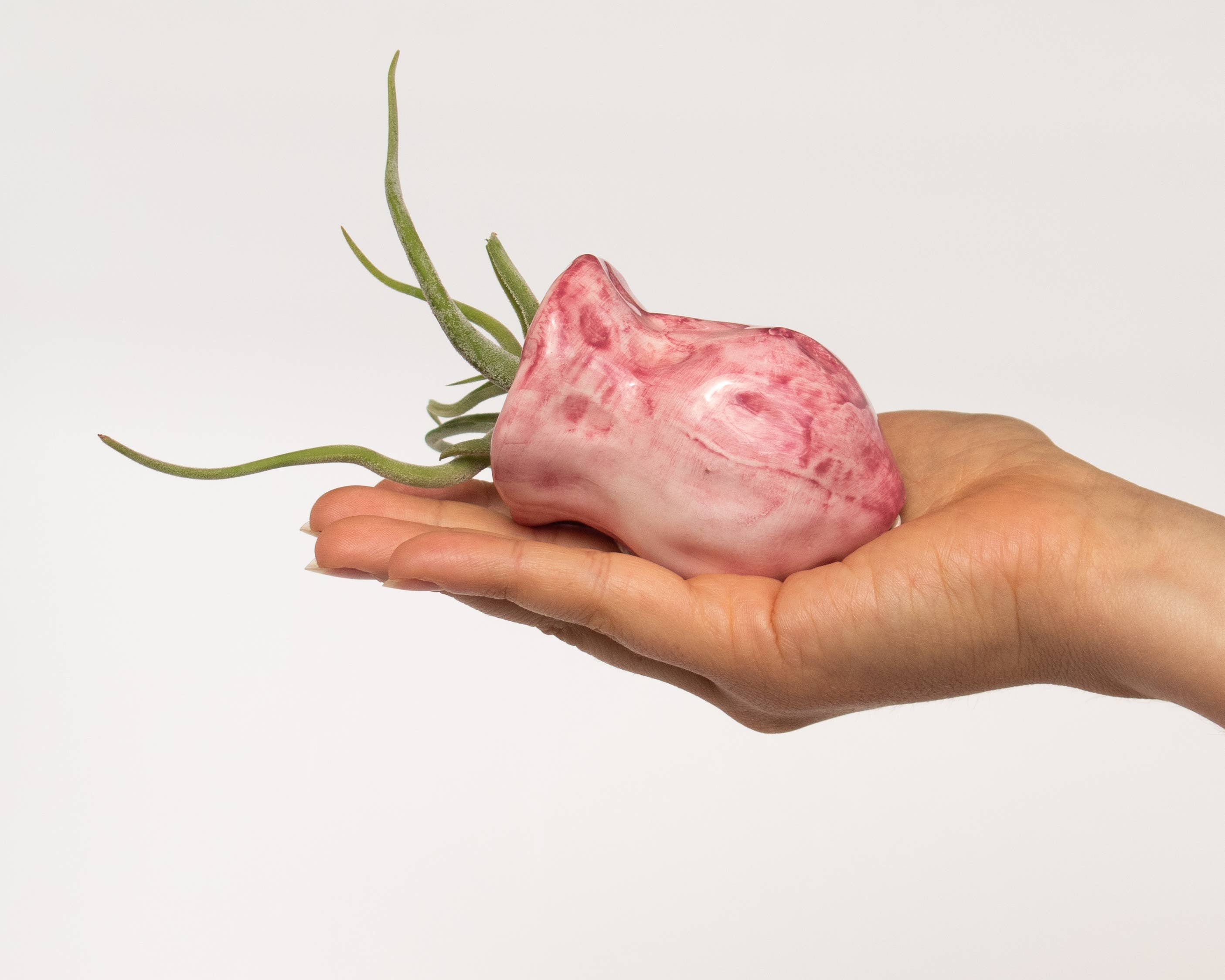 Conjunto de 3 macetas de gato en barro portugués blanco, con pigmentos rosa, gris y negro, y esmalte transparente. Un set de macetas cerámicas hechas a mano con Gonzalo, el gato más vivaz de todos. Consta de tres piezas en tamaños progresivos con la textura sedosa tan especial de las piezas artesanales: dibujadas y coloreadas a mano, bañadas en esmalte transparente. Fácil de limpiar como cualquier otra pieza de cerámica. Dimensiones aproximadas: - Mediana: 9 cm de altura, 9,5 cm de ancho. - Pequeña: 6,5 cm de altura, 6 cm de ancho. - Mini: 5 cm de altura, 3,5 cm de ancho.