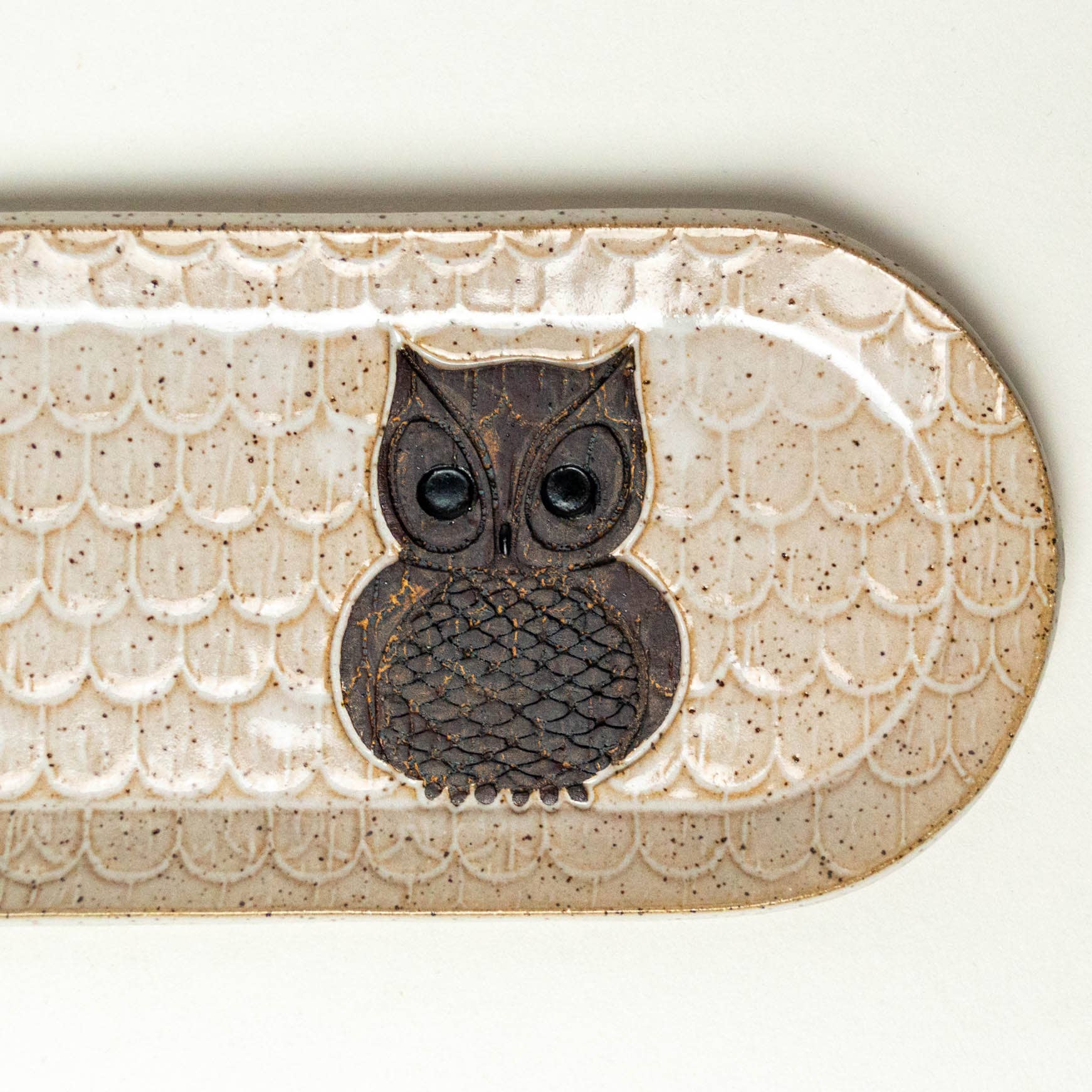 Bandeja blanca de cerámica blanca con diseño de ardilla negra hecha a mano en Ohio al por mayor