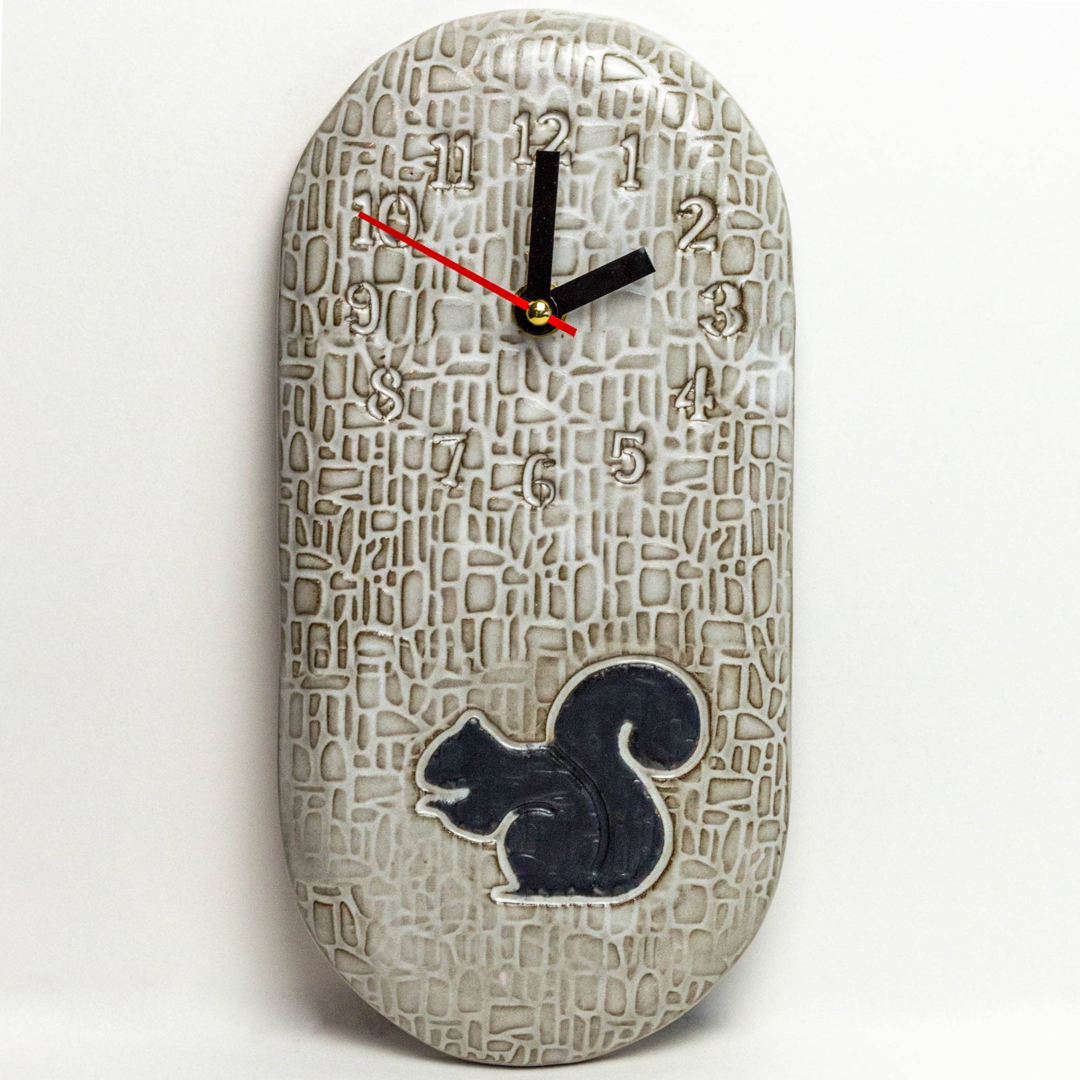 Bandeja blanca de cerámica blanca con diseño de ardilla negra hecha a mano en Ohio