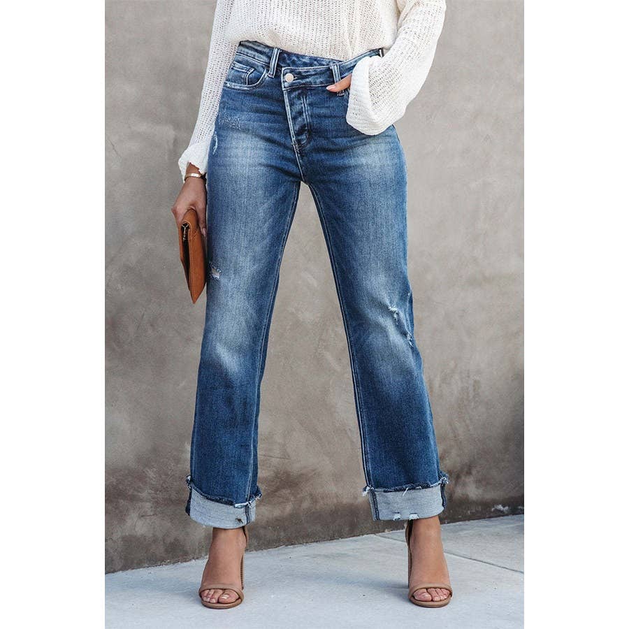 Falda corta de mezclilla asimétrica irregular de moda al por mayor