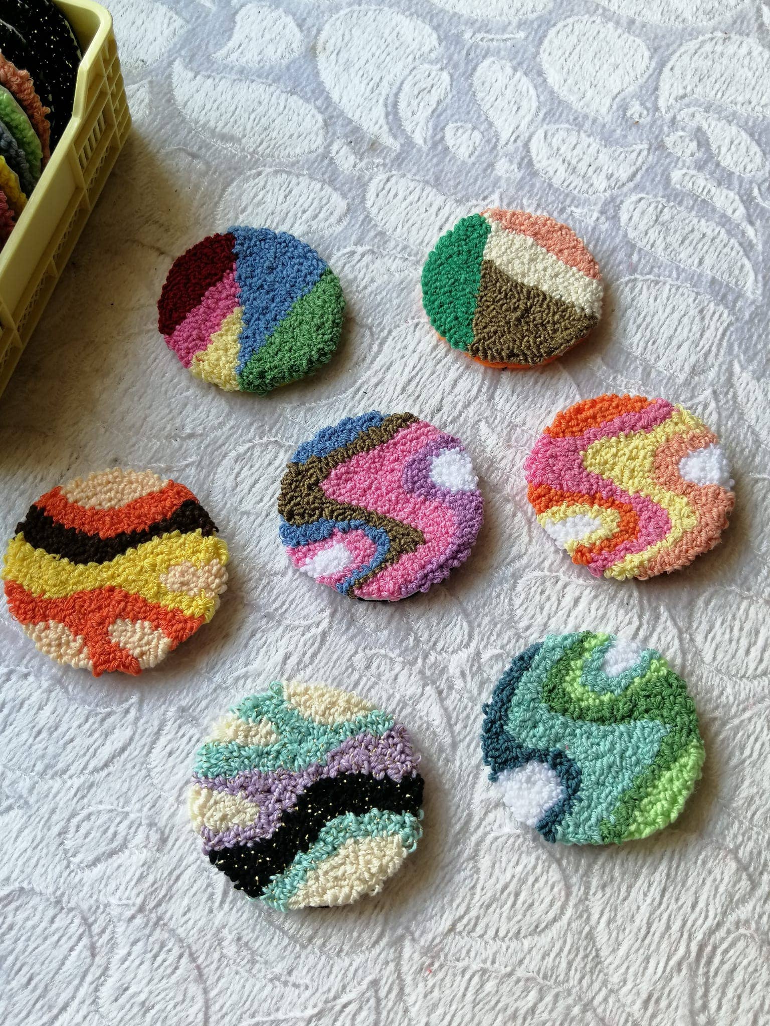 ¡Lleva el arte a tu mesa! Nuestros posavasos hechos a mano con agujas perforadas ofrecen una combinación perfecta de estilo y funcionalidad. Cada posavasos está meticulosamente diseñado, con un diámetro promedio de 10 a 12 cm, y cuenta con un respaldo de fieltro para proteger las superficies de los arañazos. Estos posavasos no solo son una hermosa adición a tu hogar, sino que también están diseñados para durar. Personalizable: ofrecemos una variedad de opciones de diseño y color para adaptarse a sus preferencias. Nos complace atender las solicitudes de diseño especiales. Descuentos en pedidos al por mayor: para pedidos al por mayor, no dude en enviarnos un mensaje para obtener ofertas de descuentos especiales. ¡Ofrecemos precios personalizados para pedidos grandes! ¿Por qué elegirnos? Toque artístico: cada posavasos es único y está cuidadosamente diseñado, lo que lo convierte en una pieza destacada en tu mesa. Protección: la parte trasera de fieltro evita arañazos en las superficies y evita que las gafas se resbalen. Durabilidad: nuestros posavasos están hechos con hilos de alta calidad, lo que garantiza que resistan años de uso. ¡Haz tu pedido ahora para añadir elegancia a tu espacio!