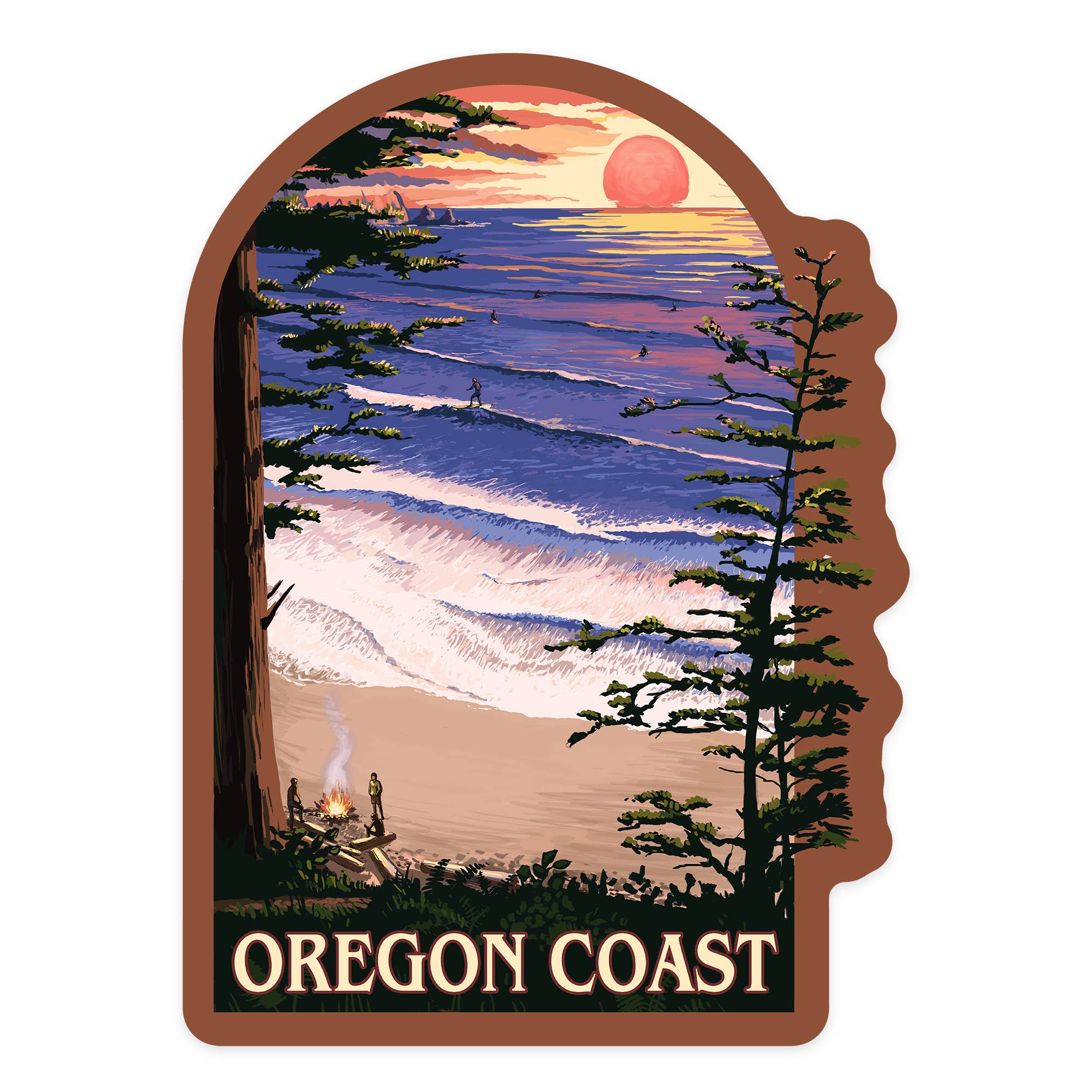 PEGATINA Oregon Coast, Sunset Surfers