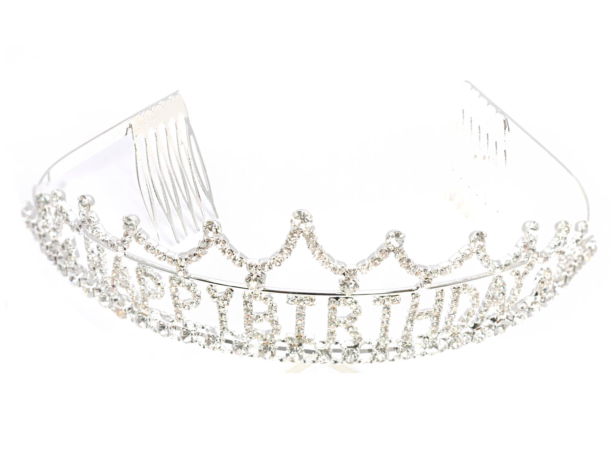 La tiara plateada clara mide aproximadamente 2,5 cm de alto por 14 cm de ancho. Está incrustada con impresionantes cristales austriacos, perfecta para ocasiones especiales como bodas, bailes de graduación, despedidas de soltera y fiestas.