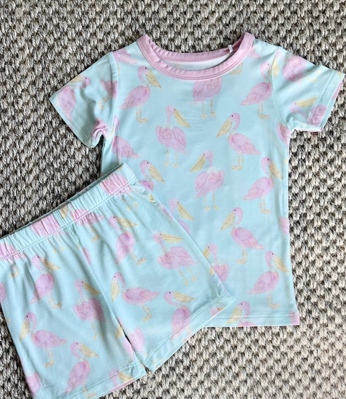 * Diseño de pelícanos menta sobre acuarela azul * Hecho de tela suave y elástica 95% viscosa de bambú, 5% spandex * Sin etiquetas para pieles delicadas * Cierre de botones a presión en la entrepierna para facilitar el cambio de pañales * Diseñado para ser ropa diaria linda y cómoda