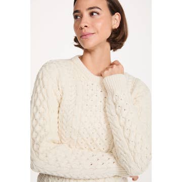 Suéter Aran ajustado para mujer Inishmore - color crema al por mayor