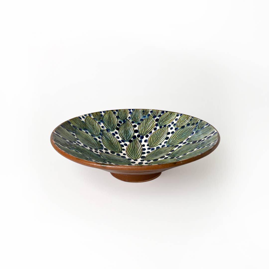 MATERIAL - Barro natural esmaltado sin plomo - Disponible en tres tamaños: pequeño: 15 cm de diámetro mediano: 19 cm de diámetro grande: 25 cm de diámetro - Todos los productos de Kiliim son hechos a mano, por lo que cada pieza es única. Se aceptan variaciones e imperfecciones leves. CUIDADO - Lavar a mano con agua y jabón - Apto para lavavajillas HISTORIA DEL PRODUCTO Túnez es un pintoresco pueblo rodeado de flores de buganvilla, palmeras y techos abovedados de adobe, ubicado entre el lago Qaroun y las dunas del desierto del oasis de Fayoum. En los años 80, la artista suiza Evelyn Porret fundó una escuela de cerámica para los niños del pueblo, introduciéndolos en las artesanías. Usando arcilla de las riberas del Nilo en Asuán, sus egresados se convirtieron en maestros alfareros que dotan a Túnez y su cerámica de un estilo único, decorándola con motivos primitivos inspirados en la flora y fauna local; una identidad exclusiva en el mundo.