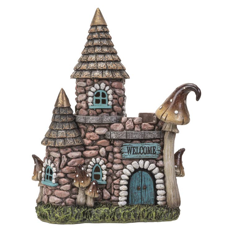 Casa de Hadas con Luz LED Tamaño del Producto: 20 cm x 14 cm x 18 cm Material: Resina Fundida en Frío Paquete: 4 unidades