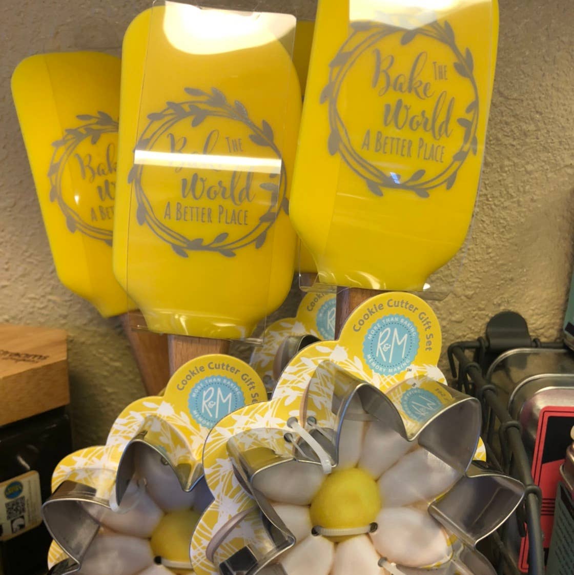 Los juegos de espátula y cortador de galletas Bake the World a Better Place de 2 piezas son el regalo perfecto para tu pastelero favorito. La espátula de silicona sin BPA de 12 pulgadas es resistente al calor para cocinar en la estufa. El cortador de galletas Daisy de 3.5 pulgadas tiene 1 pulgada de profundidad y está hecho de acero inoxidable duradero. Lavar a mano y secar bien antes de guardarla.