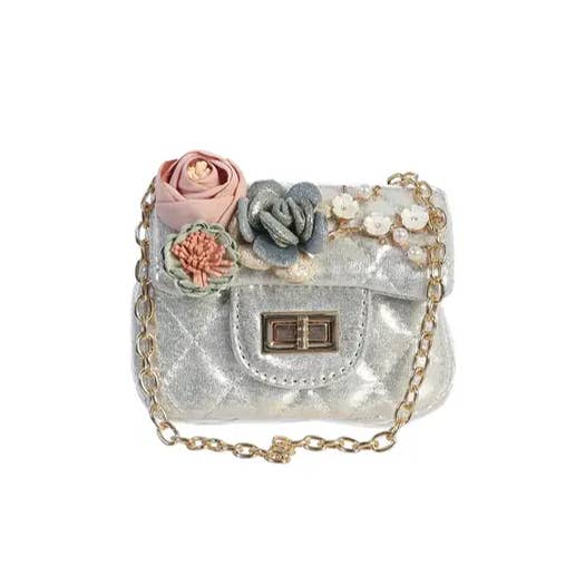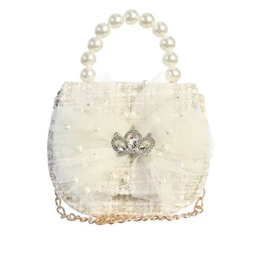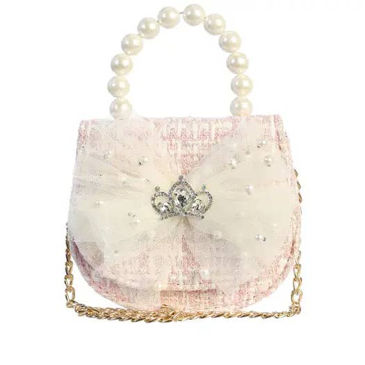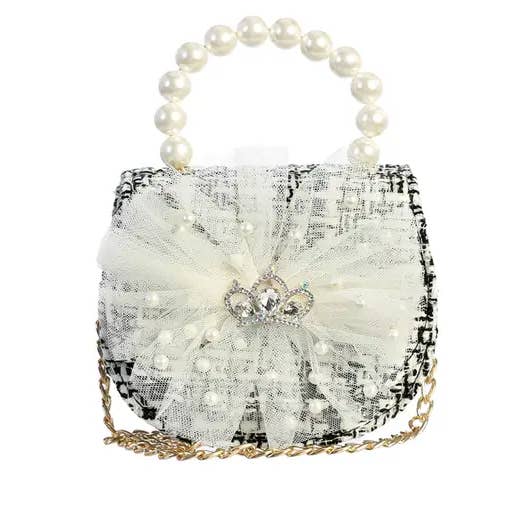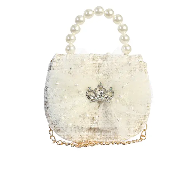 Impresionante bolso de lentejuelas con un gran detalle de lazo con detalles de pompones. Tiene un bonito mango de perlas y una correa de cadena. Tiene un cierre de solapa con cierre magnético.