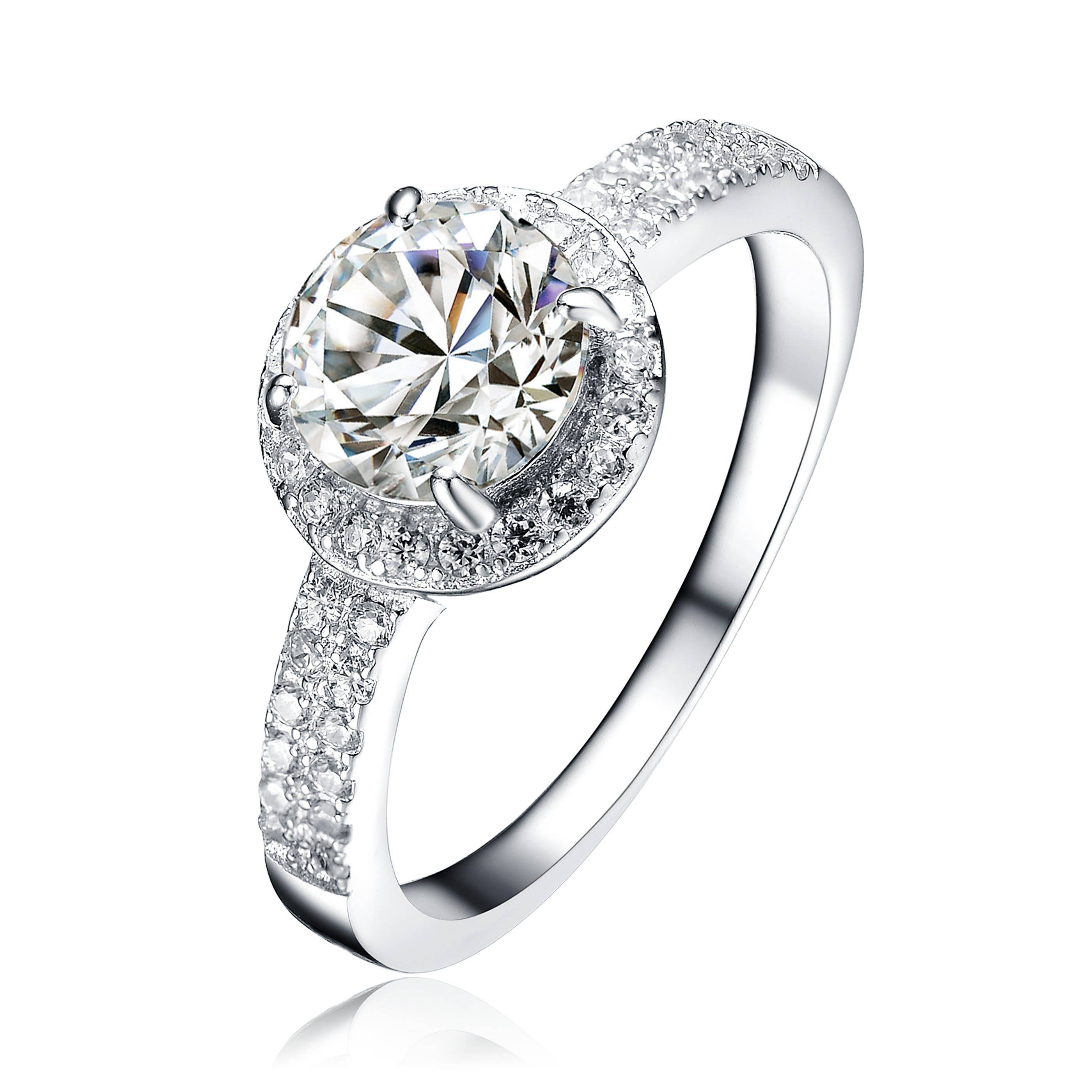 Anillo de compromiso de plata de ley con halo nupcial con circonita cúbica