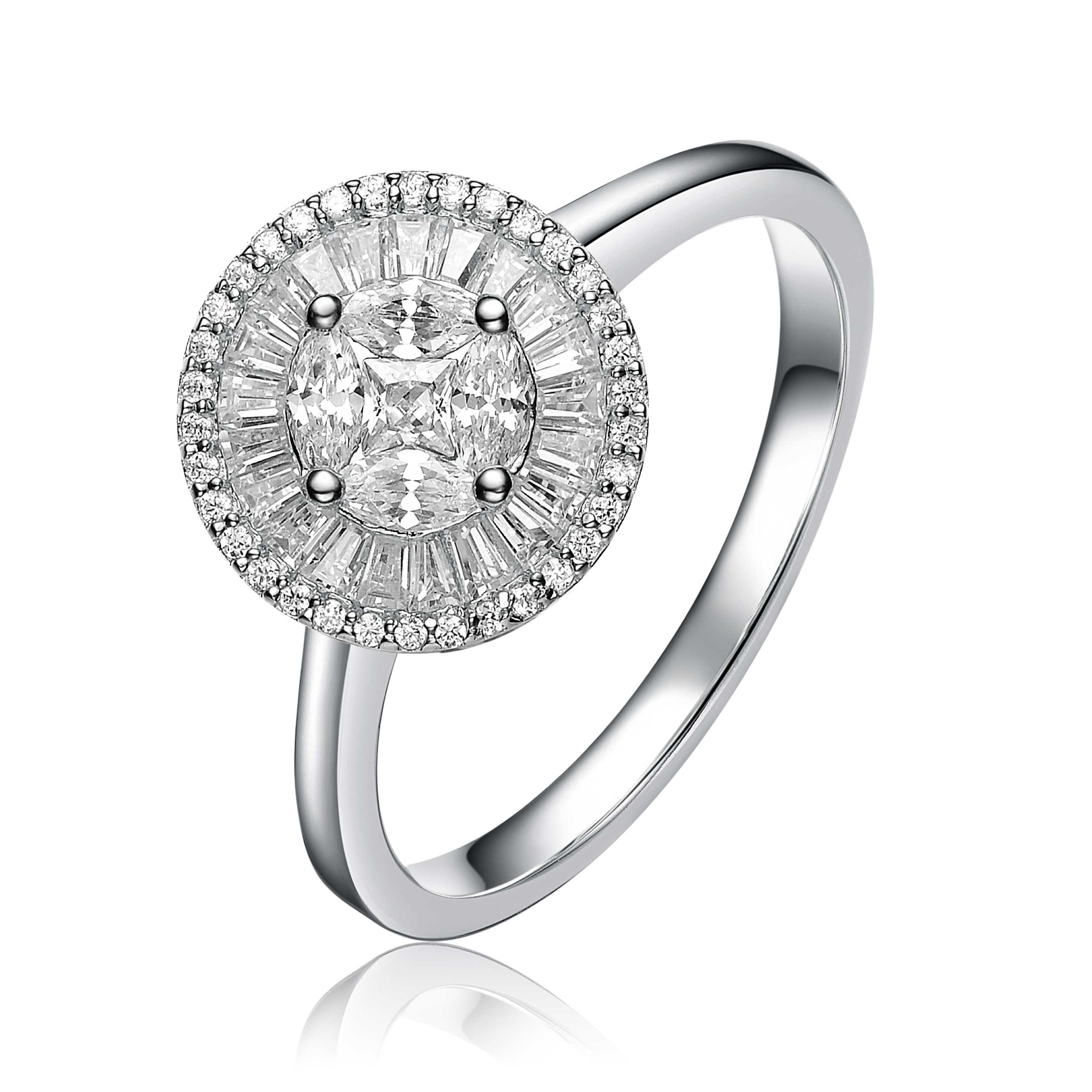 Anillo de compromiso de plata de ley con halo nupcial con circonita cúbica al por mayor