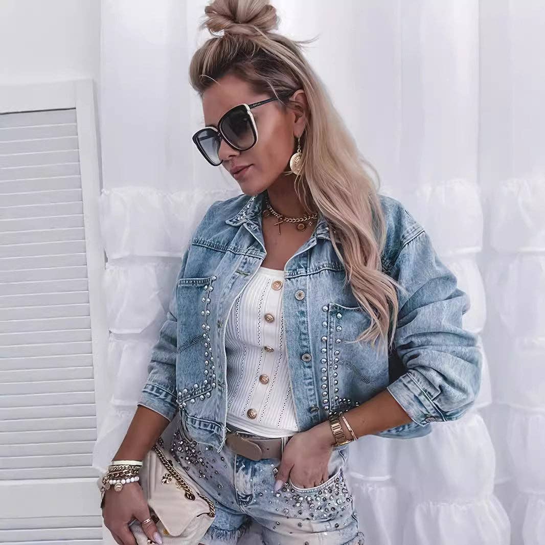 Chaqueta de mezclilla para mujer con bordado de mariposas al por mayor