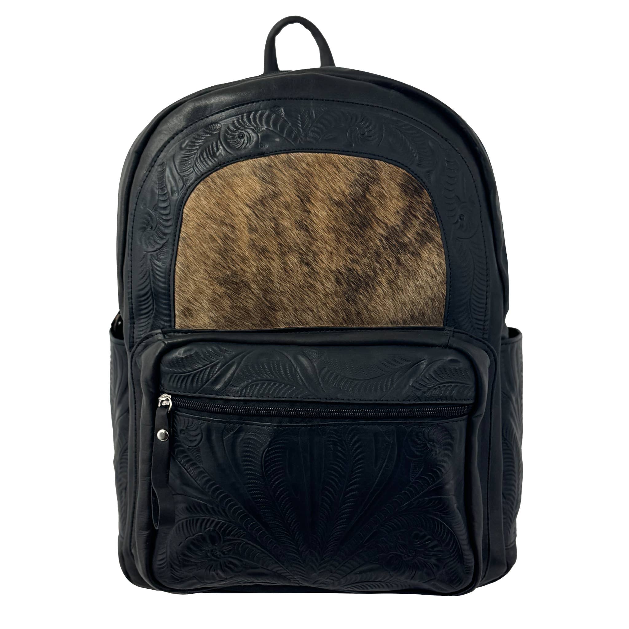 Mochila grande de viaje clásica con cordón y bolsillo frontal El estilo vintage en estampado floral y tejido de cesta se combinan en cuero genuino trabajado y teñido a mano en nuestra mochila clásica. El detalle decorativo se realza con costuras de cuero, tachuelas plateadas envejecidas y un concho occidental. Un cordón y una solapa trabajada con un broche resistente mantendrán tus pertenencias seguras. El frente tiene dos bolsillos perfectos para teléfonos móviles o llaves. El interior tiene un bolsillo con cremallera y 2 compartimentos abiertos. Cada producto de American West está trabajado a mano con cuero de vaca 100% teñido a mano. Esto añade belleza y variaciones individuales para hacer que tu producto American West sea verdaderamente único. Cierre con cordón y broche. 12 x 13 x 6" Correas ajustables.