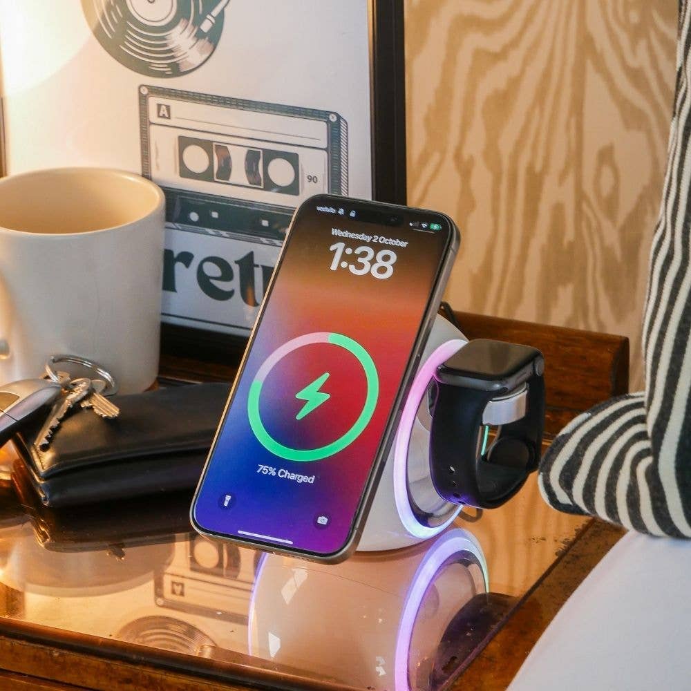 Conoce el Rise Charge, tu compañero ideal para la mesita de noche. Este elegante reloj despertador digital con carga inalámbrica transforma tus mañanas. Disponible en vibrantes colores amarillo, naranja y púrpura, combina estilo y funcionalidad. Carga inalámbrica sin cables: Olvídate de los cables enredados gracias al cargador inalámbrico integrado que es compatible con cualquier smartphone con carga inalámbrica. La máxima comodidad. Pantalla digital: Mantente puntual con la pantalla LED digital. Elige entre formatos de 24 o 12 horas para una lectura fácil, incluso en mañanas difíciles. Tres modos de alarma: No vuelvas a dormir de más con tres modos de alarma diferentes. Empieza el día con precisión. Brillo ajustable: Personaliza el ambiente de tu habitación con tres niveles de brillo según tus preferencias. Visualización opcional de fecha y temperatura: Mantente informado con un vistazo rápido a tu agenda y al clima interior. Diseño compacto y moderno: Su diseño delgado y moderno se adapta perfectamente a la decoración de tu dormitorio.