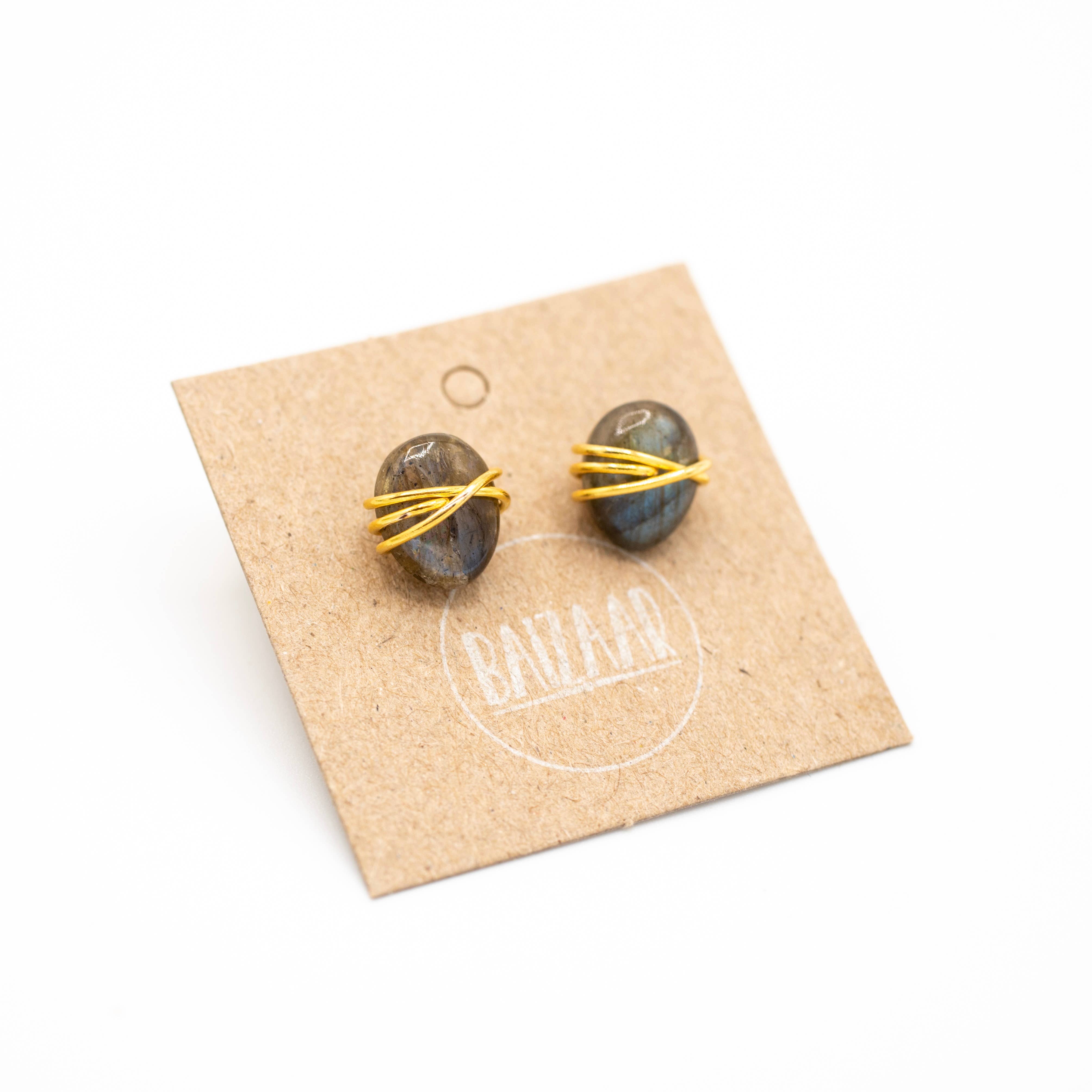 Pendientes de botón de piedra en bruto envuelta - ¡Un regalo estupendo! al por mayor