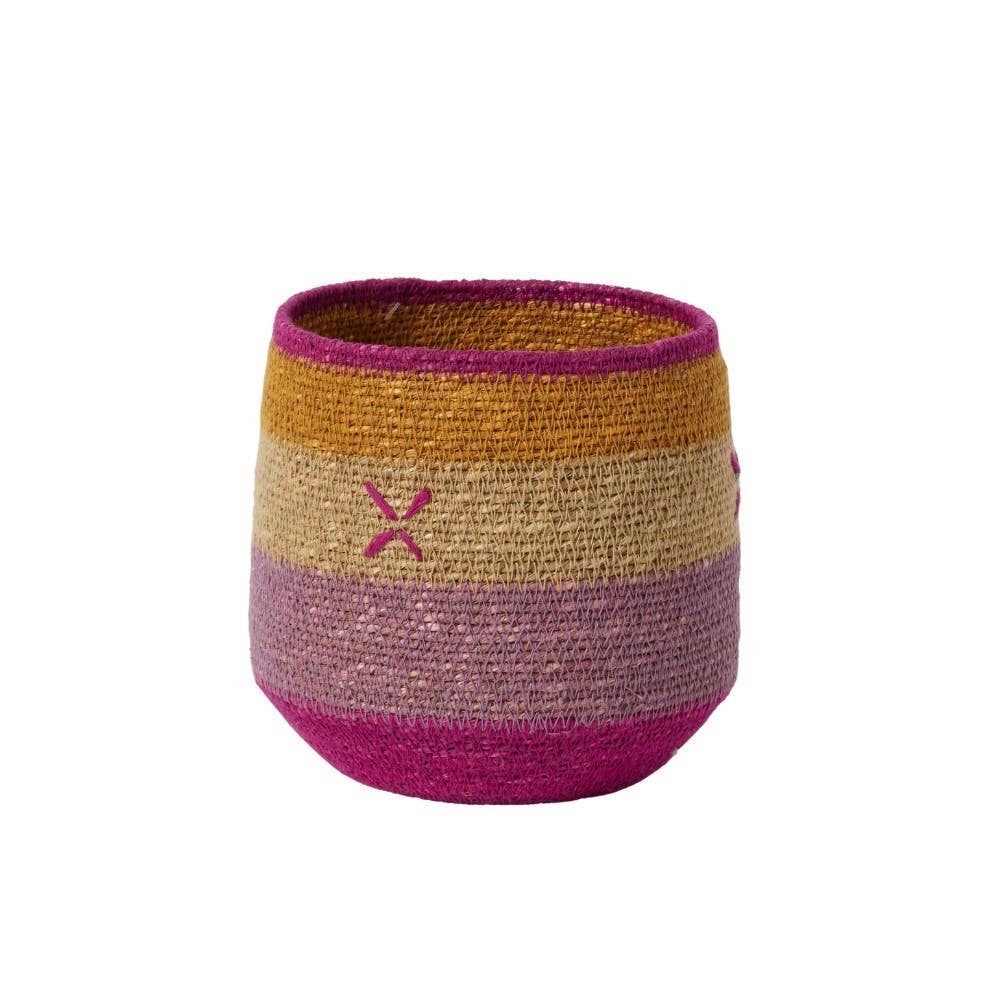 Cestas bohemias tejidas en junco de mar. Nos encantan estas cestas de estilo bohemio por este material 100 % natural. Estas cestas han sido tejidas a mano con técnicas artesanales, lo que las hace "únicas" y realzadas con rayas fantasía en colores sutiles propios de nuestra marca bohemia. A veces también hemos añadido bordados "a mano" que forman el ADN de nuestra marca. Esta hermosa gama de cestas, rica en color, en patrones, en formatos, en detalles, aportará a tu interior un toque colorido y bohemio. Úsalas como maceteros, para guardar utensilios de cocina, o simplemente para guardar tu ropa pequeña. Material: 100 % junco de mar Diámetro: 17 cm x Altura: 16 cm