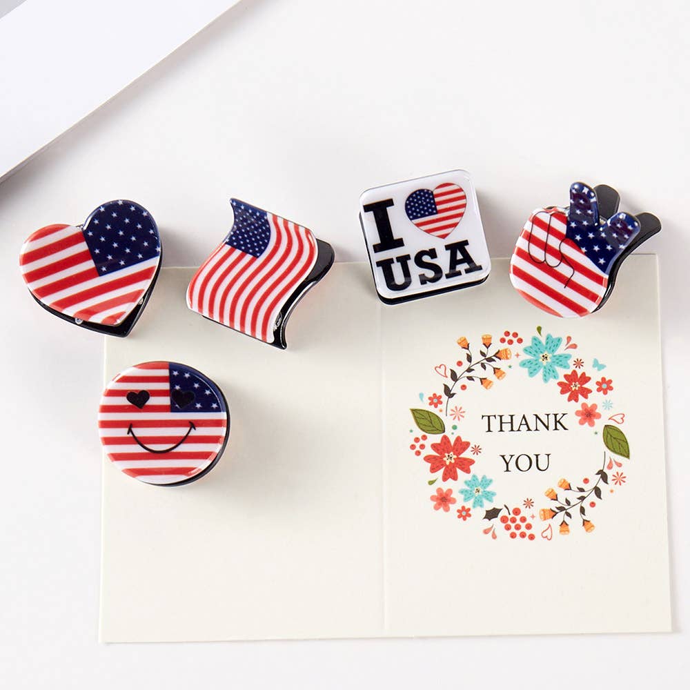 Pendientes de bandera estadounidense • Tamaño: 1 cm x 1 cm • Cierre de presión • Cumple con las normativas de plomo y níquel