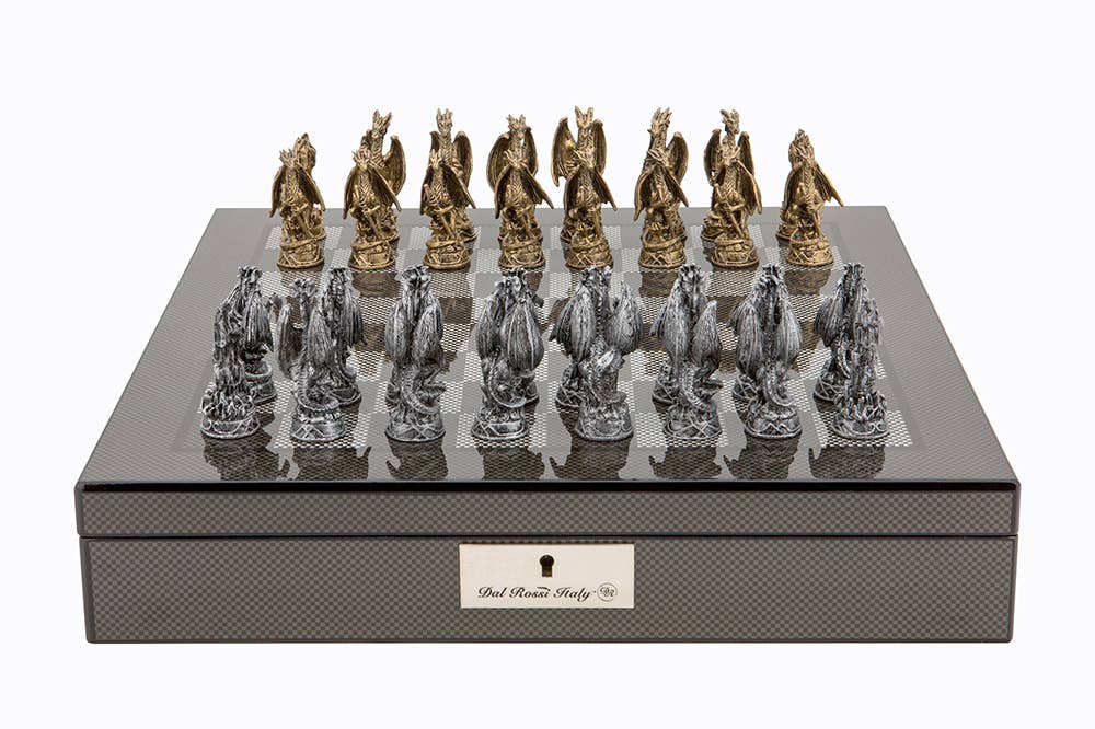 Mahjong de viaje presentado en un elegante estuche de vinilo negro que incluye soportes para las fichas, ideal para jugar en cualquier lugar.