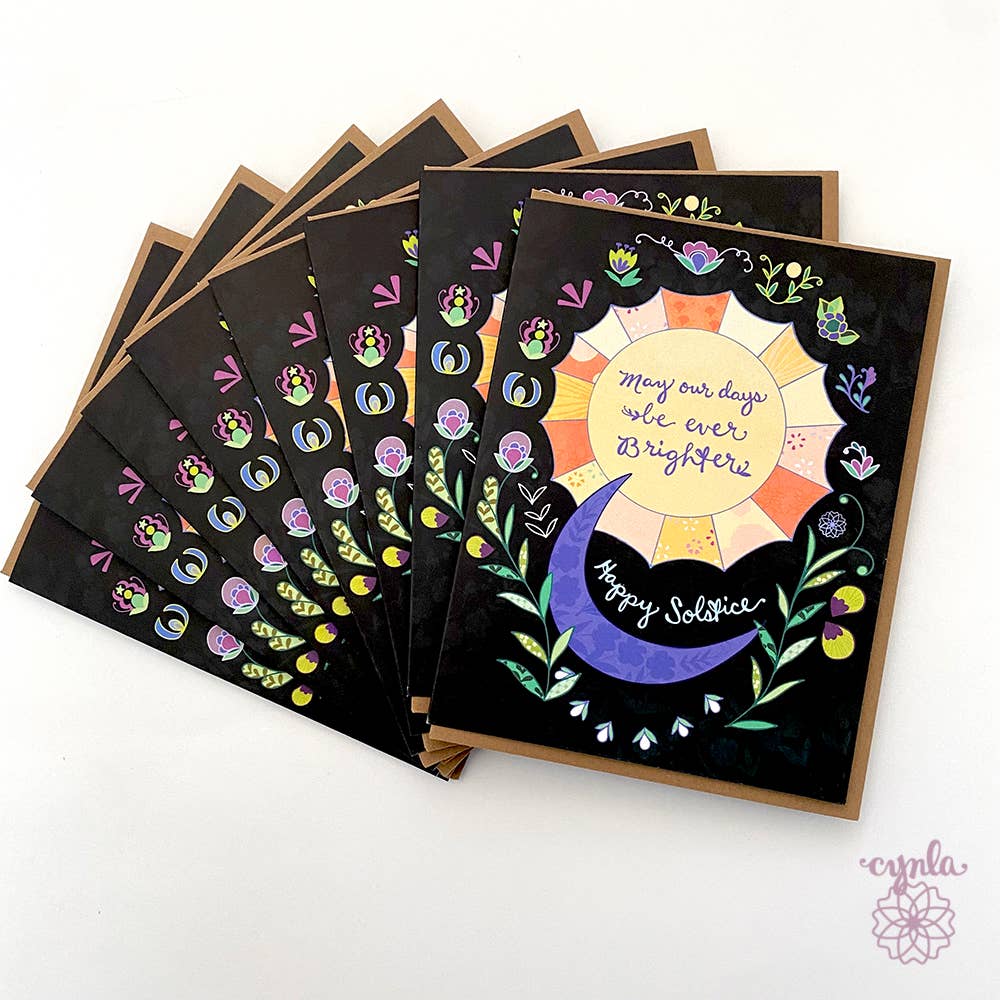 Una luna brillante ilumina la noche. Un diseño floral de estrellas, luna y sol. ¡Están disponibles tarjetas Sun Glow a juego y pegatinas a juego! Interior en blanco. Para tarjetas sin funda respetuosas con el medio ambiente, envíame un mensaje con el mensaje «sin funda» junto con tu pedido. ¡Recibirás tarjetas gratis con tu pedido! Todas las cartas son A2, 4,25 x 5,5. Impreso en EE. UU. en papel FSC 100% reciclado. Los sobres son de papel kraft, 100% reciclados. Los singles vienen empaquetados en una funda de violonchelo. Ilustraciones de Cindy LaColla. @cynlastudio
