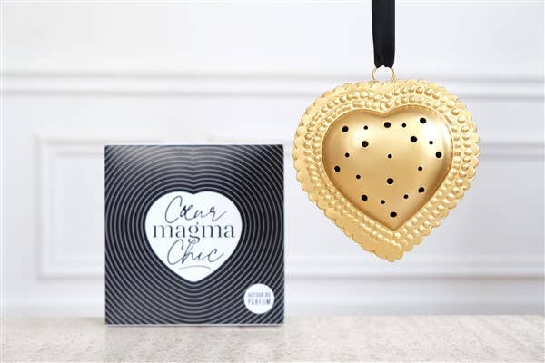 Creado para amantes de las fragancias originales, este Grand Coeur Noir Magma Chic, hecho a mano, incorpora piedras volcánicas de Auvernia que perfumarán tus espacios de manera auténtica. Ancho de 12 cm. Presentado en un estuche. Para recargar las piedras volcánicas de tu Magma Chic: Coloca las piedras en un cuenco. Añade unas gotas del perfume recargable Magma. Deja secar y vuelve a colocar las piedras en la esfera. Disponible en 4 aromas: Mysore Santal, Patchouli Borobudur, Tonka Bean y Oud Wood.