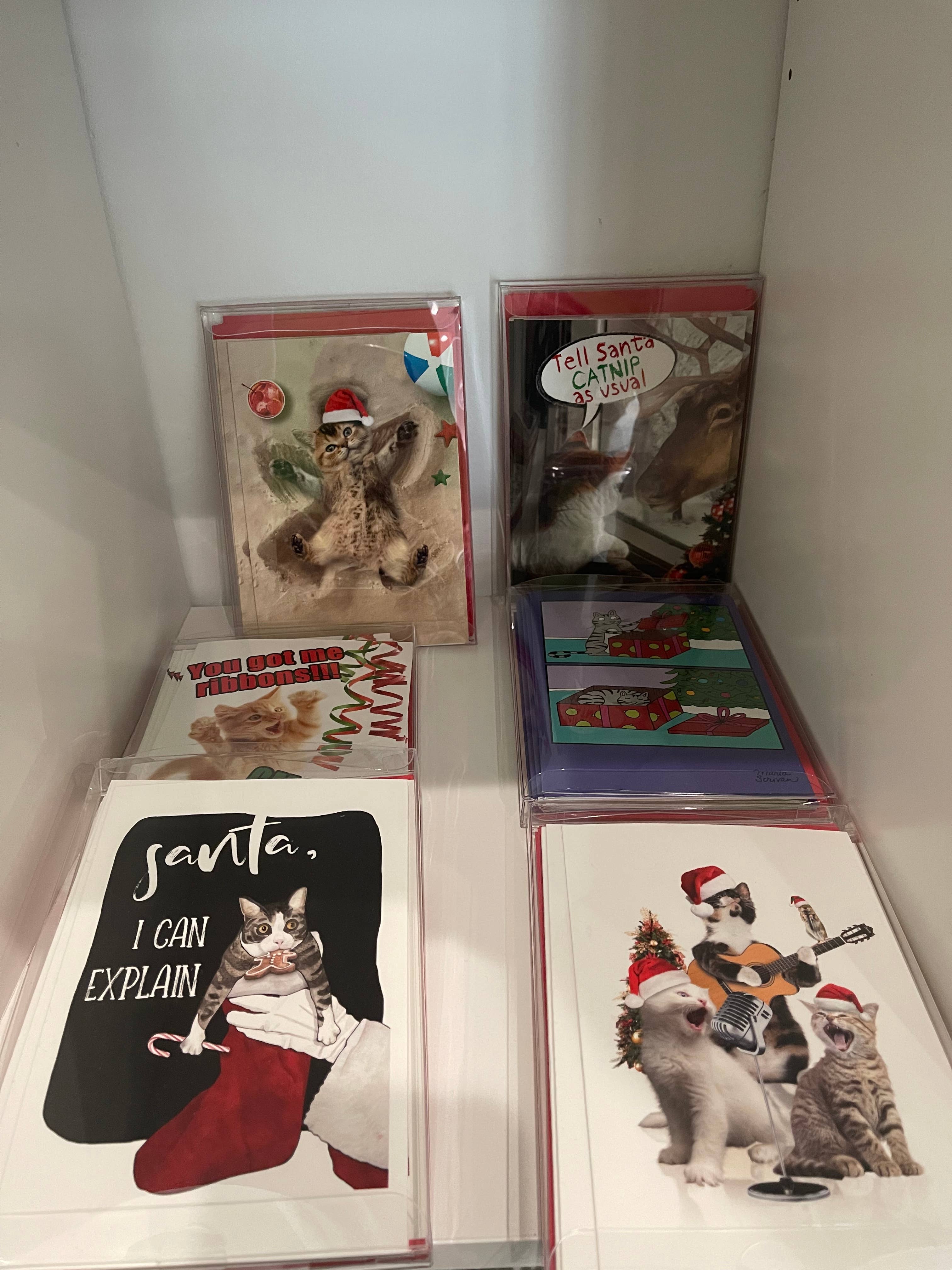 Caja de 12 tarjetas navideñas con forma de gato y ángeles navideños al por mayor