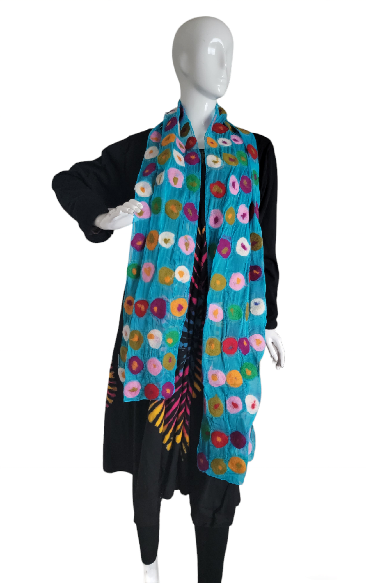 Bufanda S-5 de fieltro de lana y seda estampada con círculos Hecho a mano en Nepal