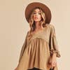 Silueta inspirada en babydoll, el Top Natalie presenta un ajuste relajado con fruncido en la parte superior, mangas exageradas y un dobladillo inferior sin rematar que se puede combinar perfectamente con tus pantalones cortos de mezclilla favoritos.