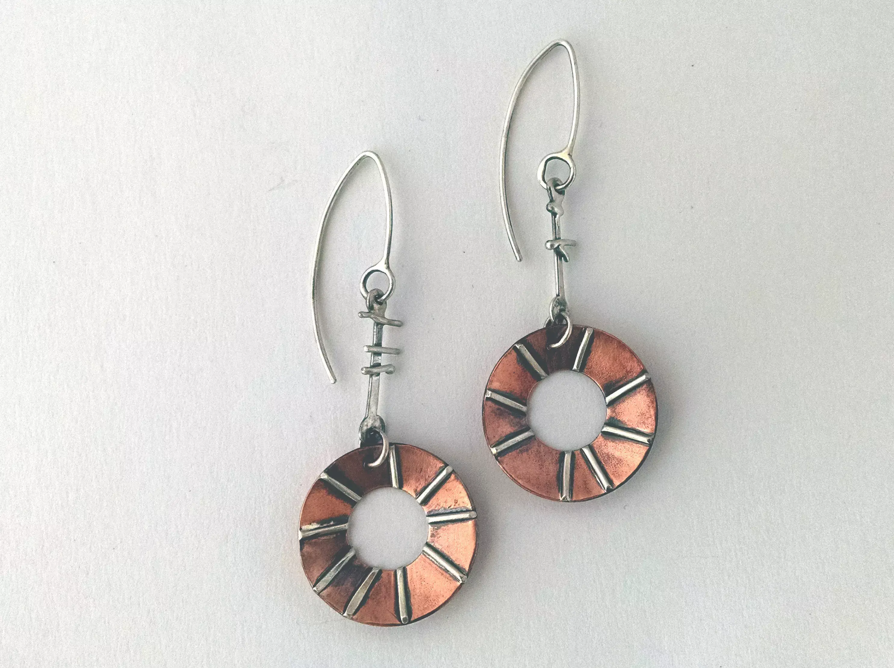 Pendientes contemporáneos de plumas en latón o cobre, fundidos, soldados, fabricados, remachados, patinados y sellados con laca. Simbólicamente, las flechas pueden encarnar una integración perfecta de la guía interior, la atención emocional y la intención aguda. Las joyas hechas a mano pueden tener ligeras variaciones de apariencia en comparación con las fotos. Para que tu pieza coincida exactamente con la imagen, infórmeme en el momento de la compra y espere más tiempo para la producción.