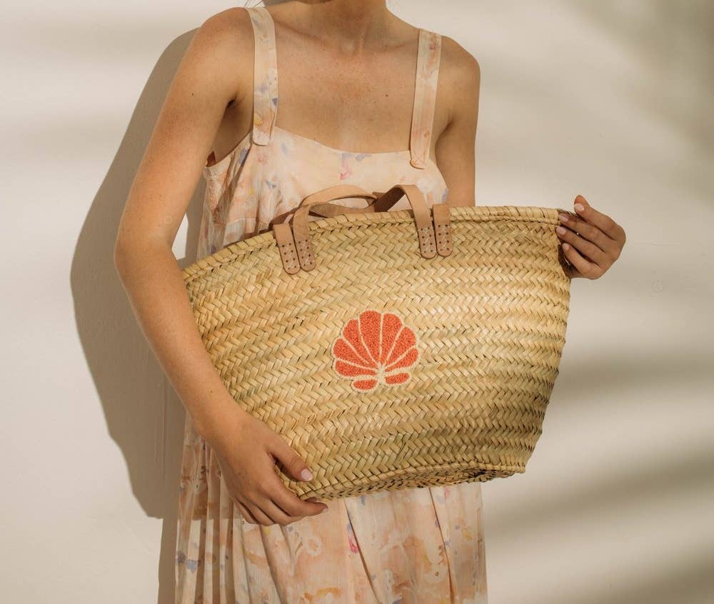 Añade un toque de elegancia natural a tus aventuras de verano con este bolso de playa de paja. No solo es práctico, sino que también funciona como un accesorio con estilo que destaca sin esfuerzo. Este bolso de estilo bohemio está tejido a mano con hojas naturales de palma y cuenta con un sofisticado asa de cuero genuino, ofreciendo encanto y comodidad, ya sea que vayas a la playa, de compras o a un día casual. Perfecto para: Días de playa, descanso junto a la piscina, vacaciones, resorts, viajes, trabajo, compras, citas, despedidas de soltera, reuniones con amigos y más. Dimensiones aproximadas: Ancho: 40 cm Altura: 27 – 30 cm Nota: Las dimensiones no incluyen las asas. Al ser cada bolso hecho a mano, las medidas pueden variar ligeramente, haciendo que cada pieza sea única. Características adicionales: - Alternativa ética y ecológica a las bolsas de plástico - Tejido a mano en Marruecos con hojas de palma silvestre (“Doumdoum”) - Materiales: paja, hojas de palma, cuero genuino
