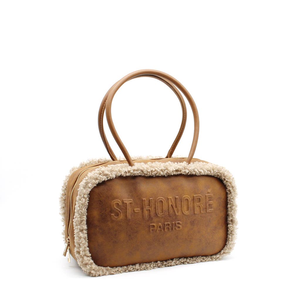 Bolso de la colección ST-HONORÉ, en material efecto ante con borde de imitación de piel. Doble asa rígida y correa desmontable. Cierre con cremallera. Formato espacioso y práctico, perfecto para otoño-invierno. H28 x L35 x P17 cm