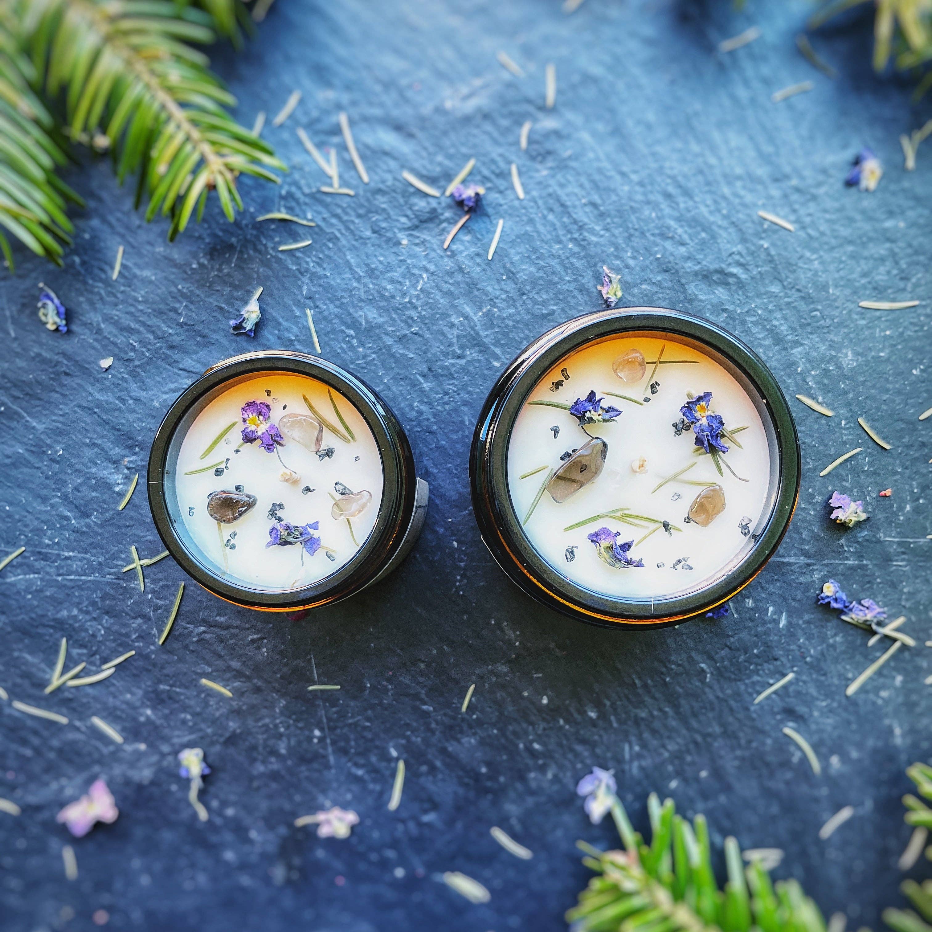 La vela Relajación y Calma te permitirá crear una atmósfera de descanso y relajación. La amatista es una piedra cuyas propiedades principales son calmar el alma y aliviar las ansiedades. Puede ayudar a liberar el estrés al calmar los miedos y tranquilizar la mente y el corazón. El aceite esencial de lavanda orgánica aporta una fragancia fresca, relajante y suavizante, realzada por los pétalos secos de lavanda, rosa y aciano. Disponible en tres tamaños: - Pequeño: 60 ml con 15 horas de combustión - Mediano: 120 ml con 25 horas de combustión - Grande: 180 ml con 35 horas de combustión Ingredientes: Cera de soja no transgénica, mecha de algodón sin blanquear, aceites esenciales y/o fragancias naturales, flores secas, piedra semipreciosa.