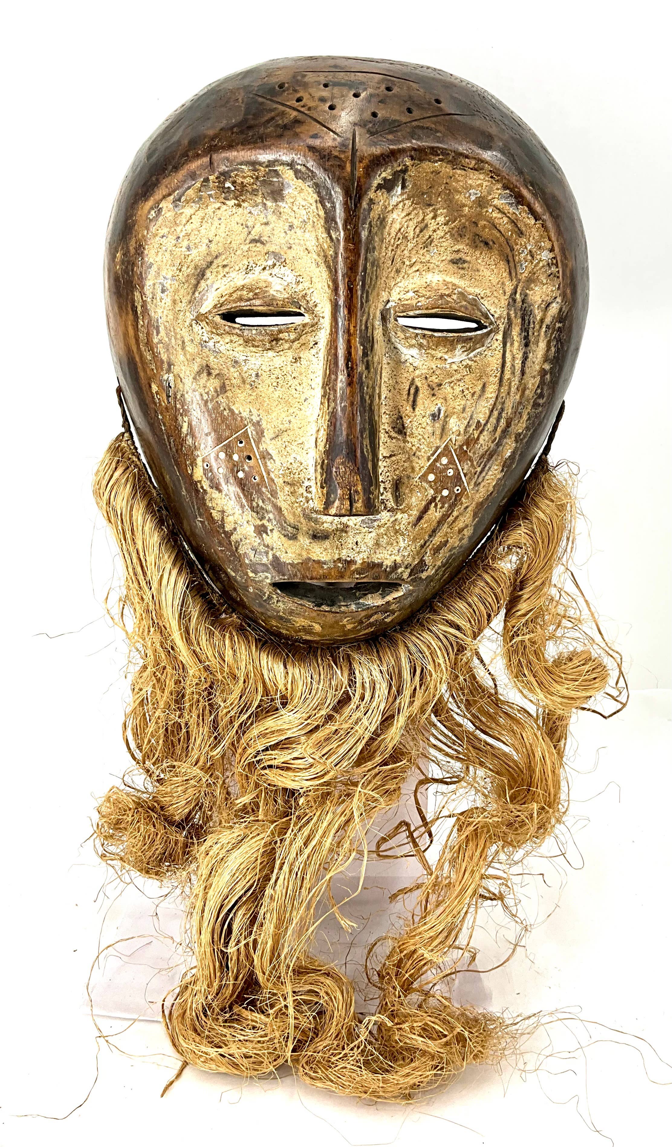 Bailadas por miembros de la Sociedad Poro, las máscaras Bete se utilizan para enseñar leyes y tradiciones tribales. Las máscaras representan espíritus y ancestros. El bailarín puede cantar, contar proverbios y bendecir al público durante la actuación. Tamaño aproximado: 18 cm x 10 cm x 9 cm
