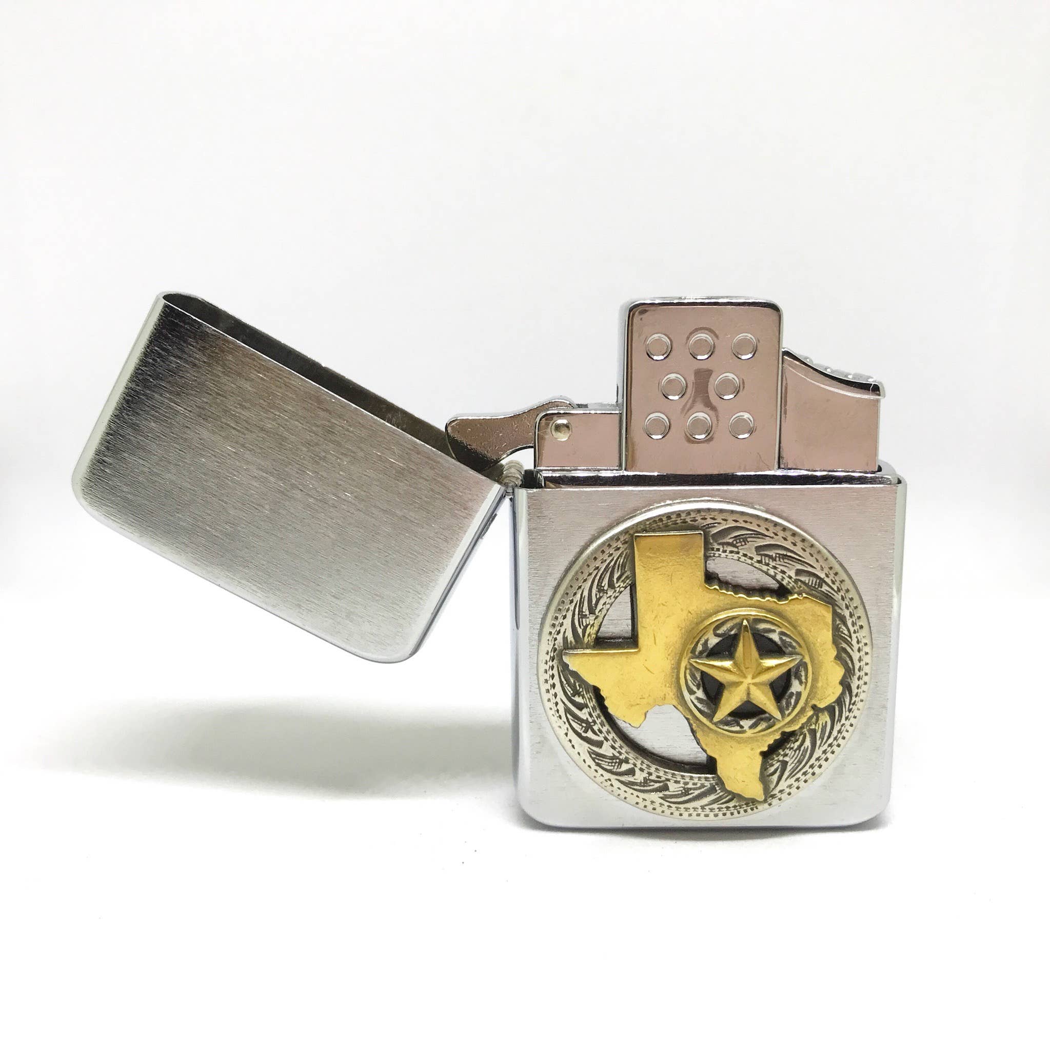 Cortador de puros con adorno antiguo de estrellas de Texas Cortador de cigarros de acero inoxidable con dos cuchillas de guillotina que crean un corte rápido y perfecto para tu cigarro favorito. Las cuchillas tienen una profundidad previamente medida, por lo que no tendrás que preocuparte por cortar demasiado o muy poco. Corta un calibre de hasta 60 anillos Acero inoxidable de alta calidad Dos cuchillas de guillotina Acabado cepillado Extragrandes tiradores para el pulgar.