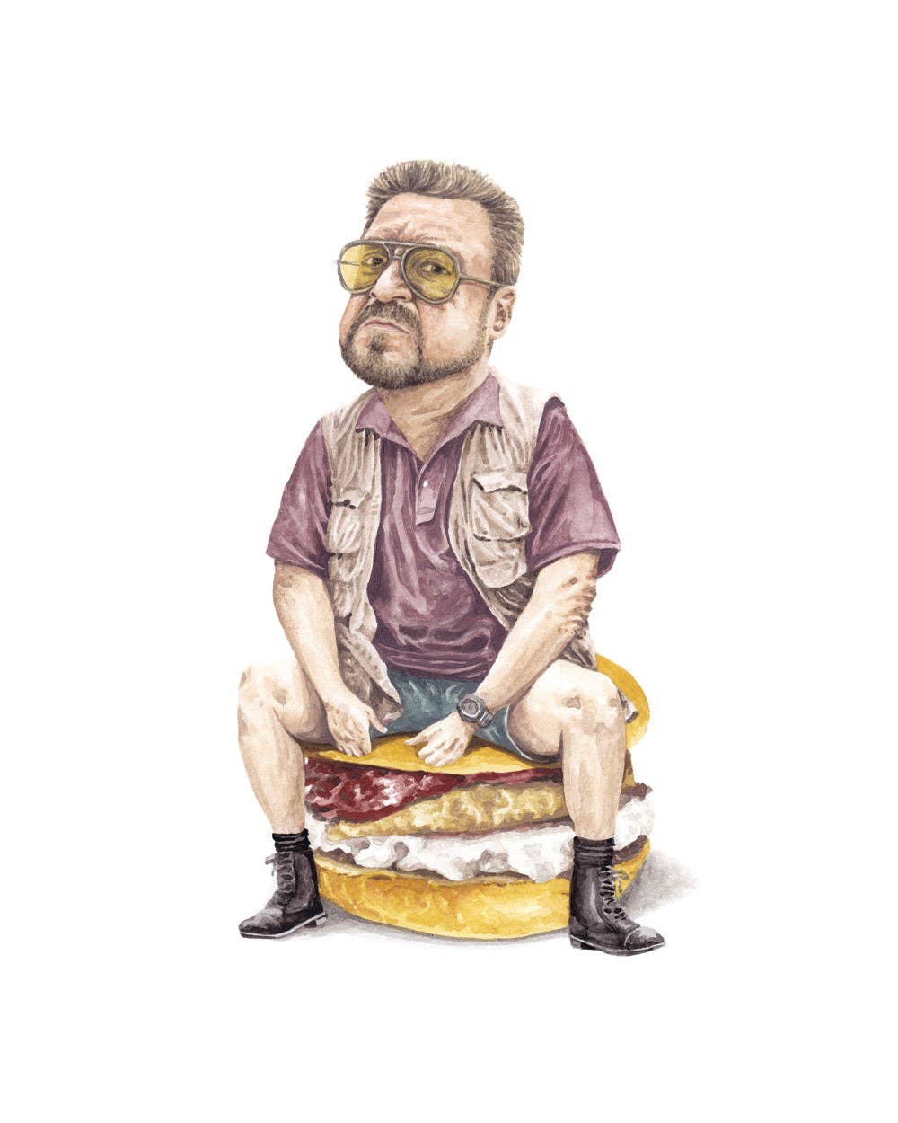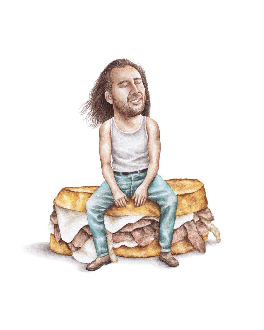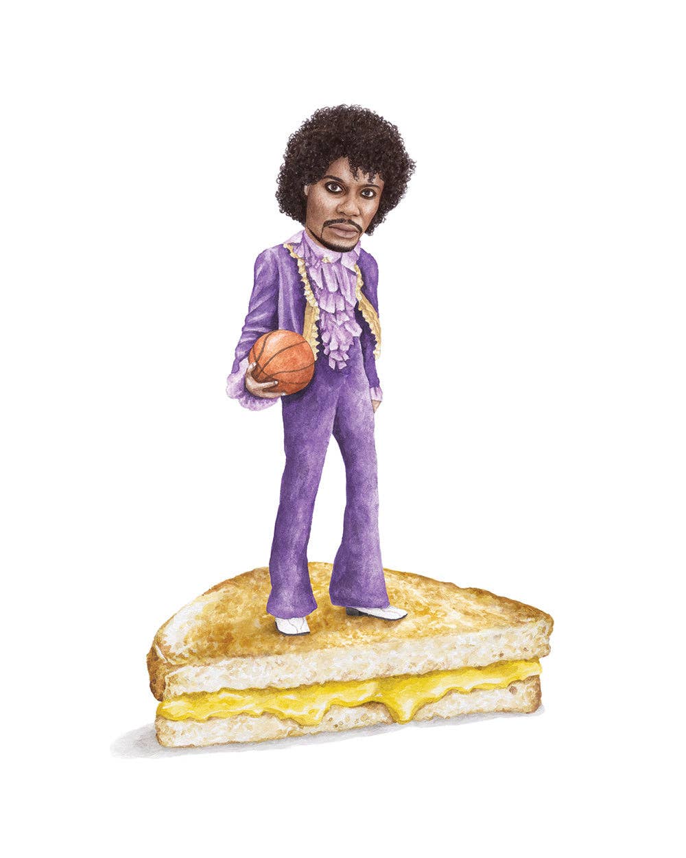 Impresión en acuarela de 8 x 10 pulgadas de Dave Chappelle como Príncipe sobre un queso a la parrilla. Impreso en papel de archivo de bellas artes de gran gramaje (290 g/m²), libre de ácidos, con una superficie ligeramente texturizada. No incluye marco. El respaldo de cartón para cada impresión está disponible a pedido por un cargo adicional. Póngase en contacto con nosotros para obtener más información.