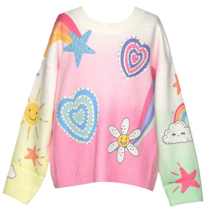 Jersey con estampado de gato y notas musicales con detalle de strass.