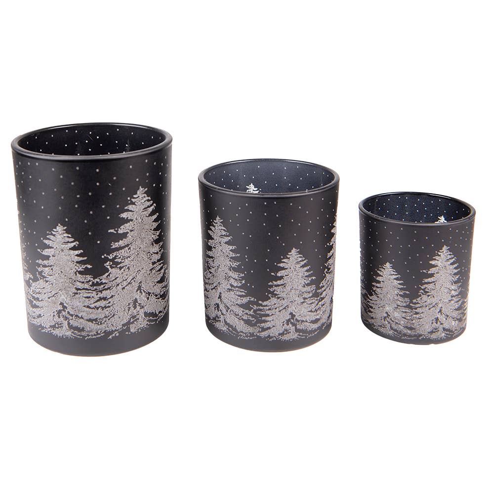 Juego de 3 portavelas 6GL4104 con forma de pino de cristal negro