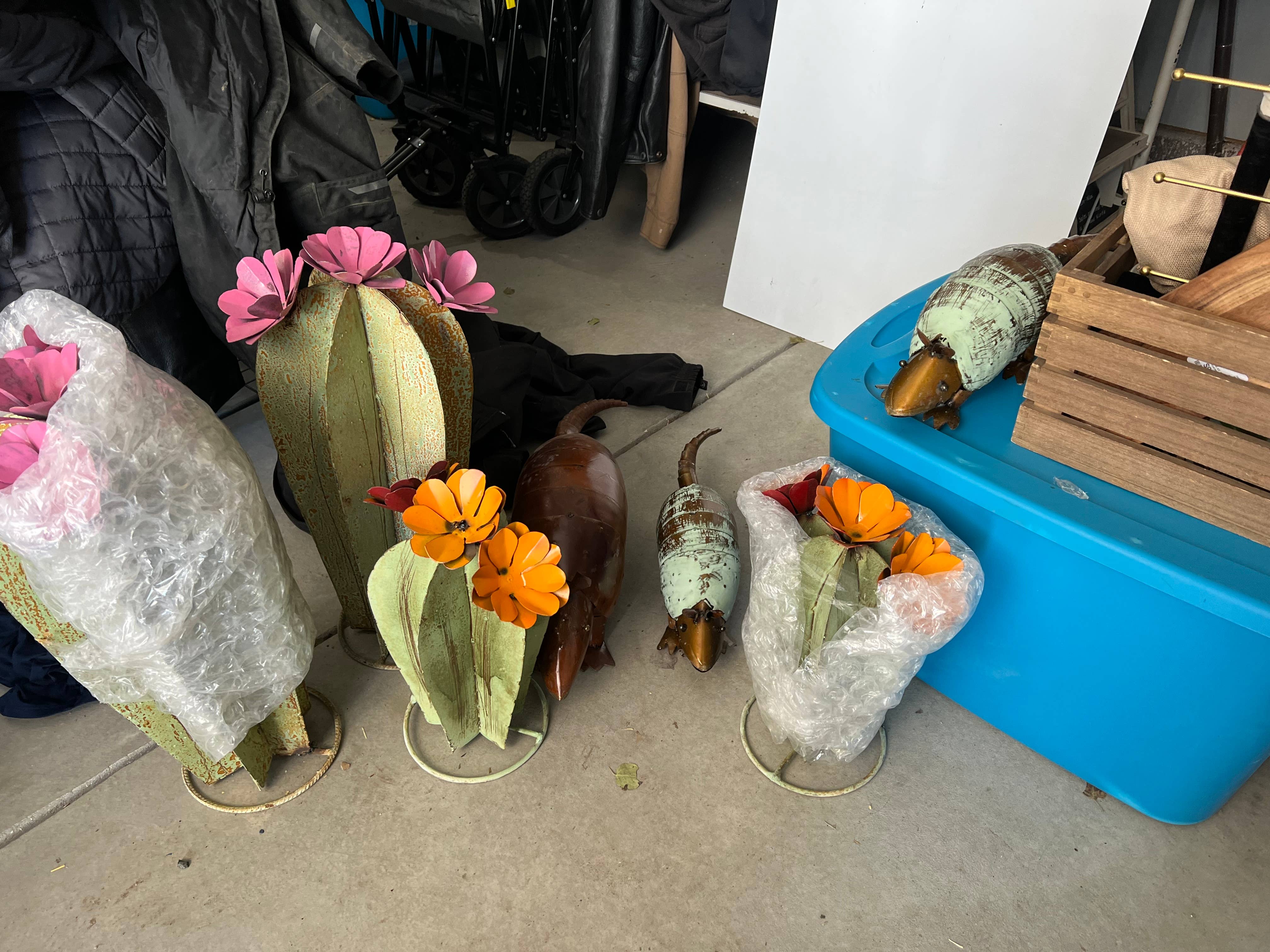 Nuevo artículo para nosotros. Estás comprando un cactus. Ofreceremos tres tamaños y dos colores en estas bellezas. Las flores pueden variar en colores. Tenlo en cuenta y compra en consecuencia. Los tamaños y tonos de color pueden variar un poco. Tenlo en cuenta. La foto es una representación de lo que recibirás. Si los colocas afuera, una capa generosa de sellador transparente asegurará su longevidad. Hechos a mano y pintados a mano meticulosamente, son rústicos y, por lo tanto, pueden tener algunas muescas, arañazos, soldaduras, etc. No esperes una pieza perfecta. Habrá arañazos en la pintura. Eso es normal e inherente a estas piezas y no es un defecto. Así que por favor compra en consecuencia. Cactus Yuma: Verde Pequeño-12x14H pulgadas Mediano-12x19H pulgadas Grande- 12W x 23H pulgadas