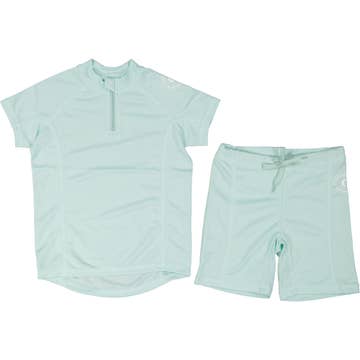 Aún no hay opiniones sobre Conjunto de camisa y pantalones cortos estampados verde salvia para niño.