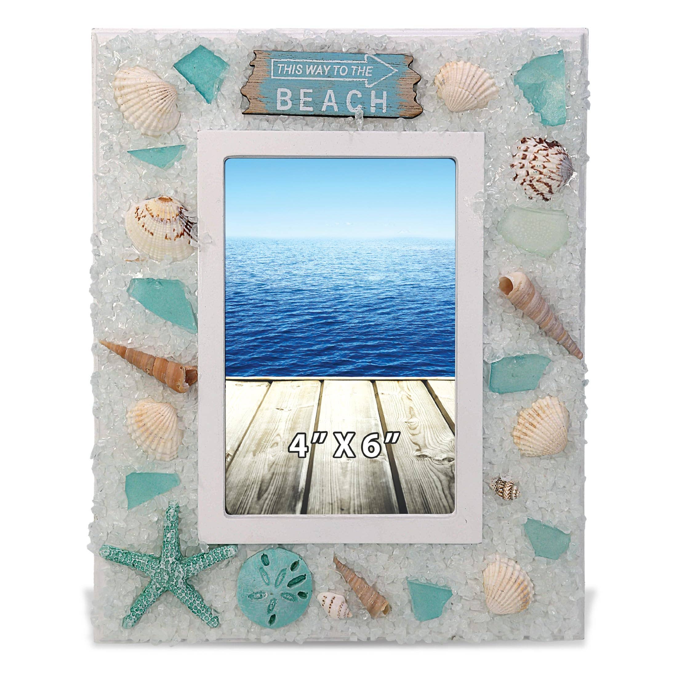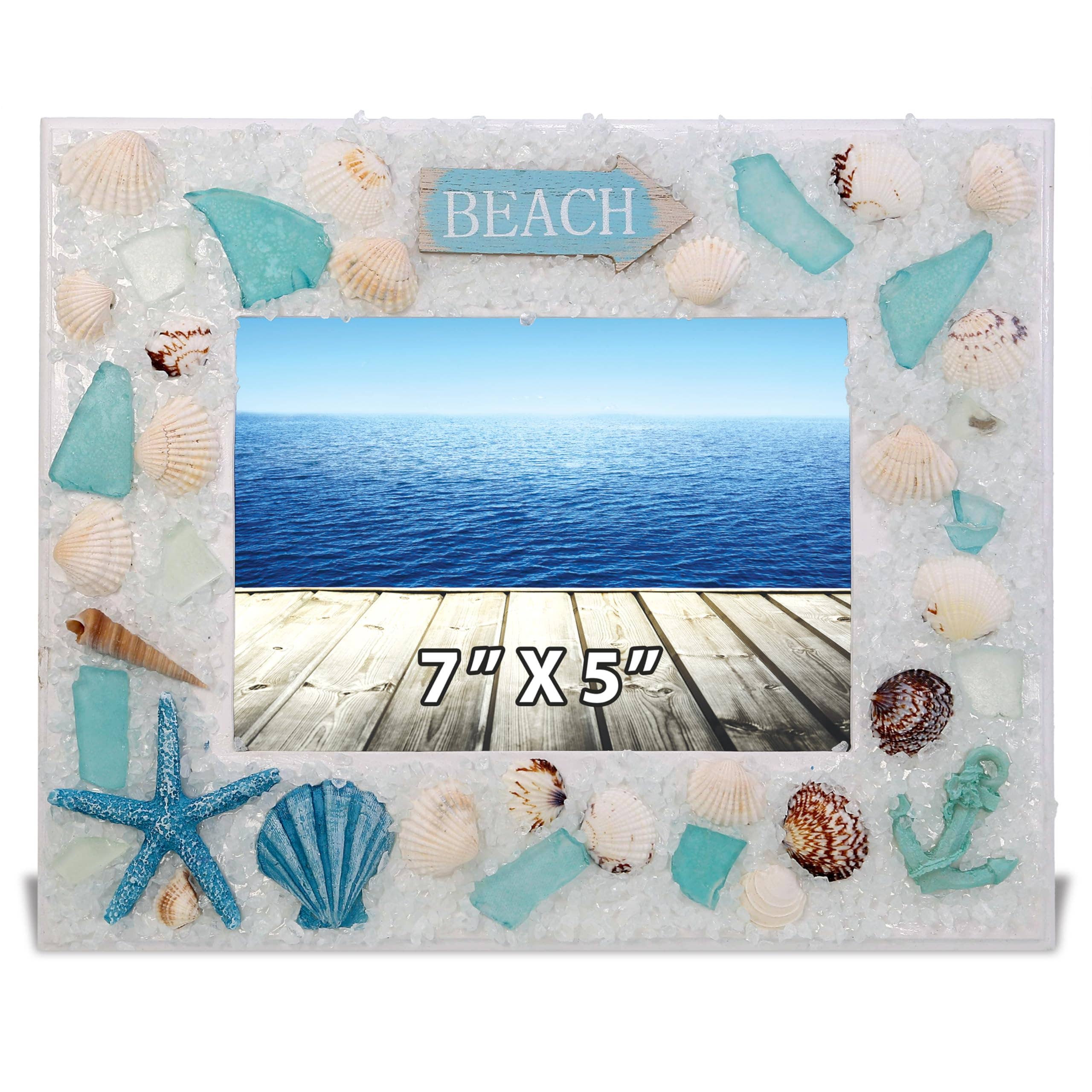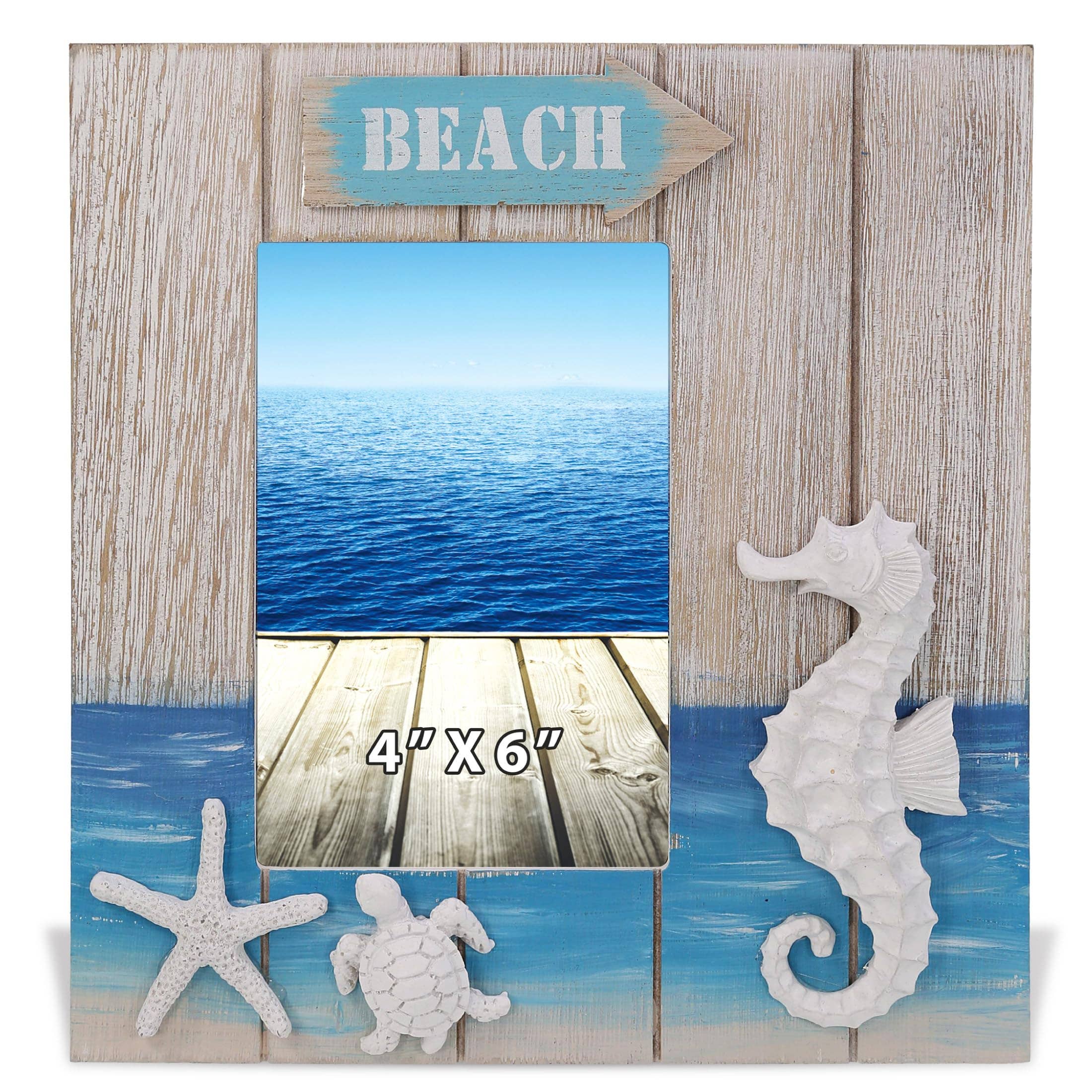 Marco de fotos CoTa Global Driftwood Anchor 6x4 - Marco de fotos de madera blanca envejecida para recuerdos de vacaciones de verano, marco de fotos náutico de madera flotante hecho a mano para mesa o pared - 10,6 pulgadas