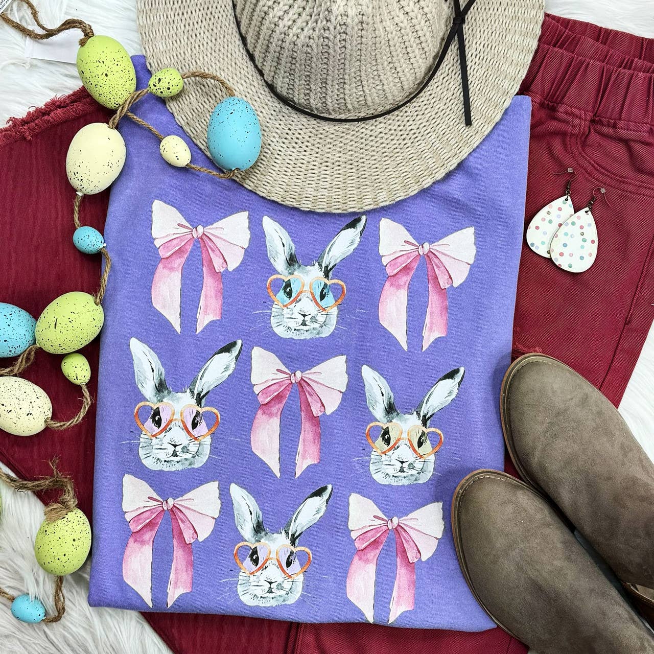 Camiseta teñida con pigmento con parche de chenilla con diseño de conejo con gafas al por mayor