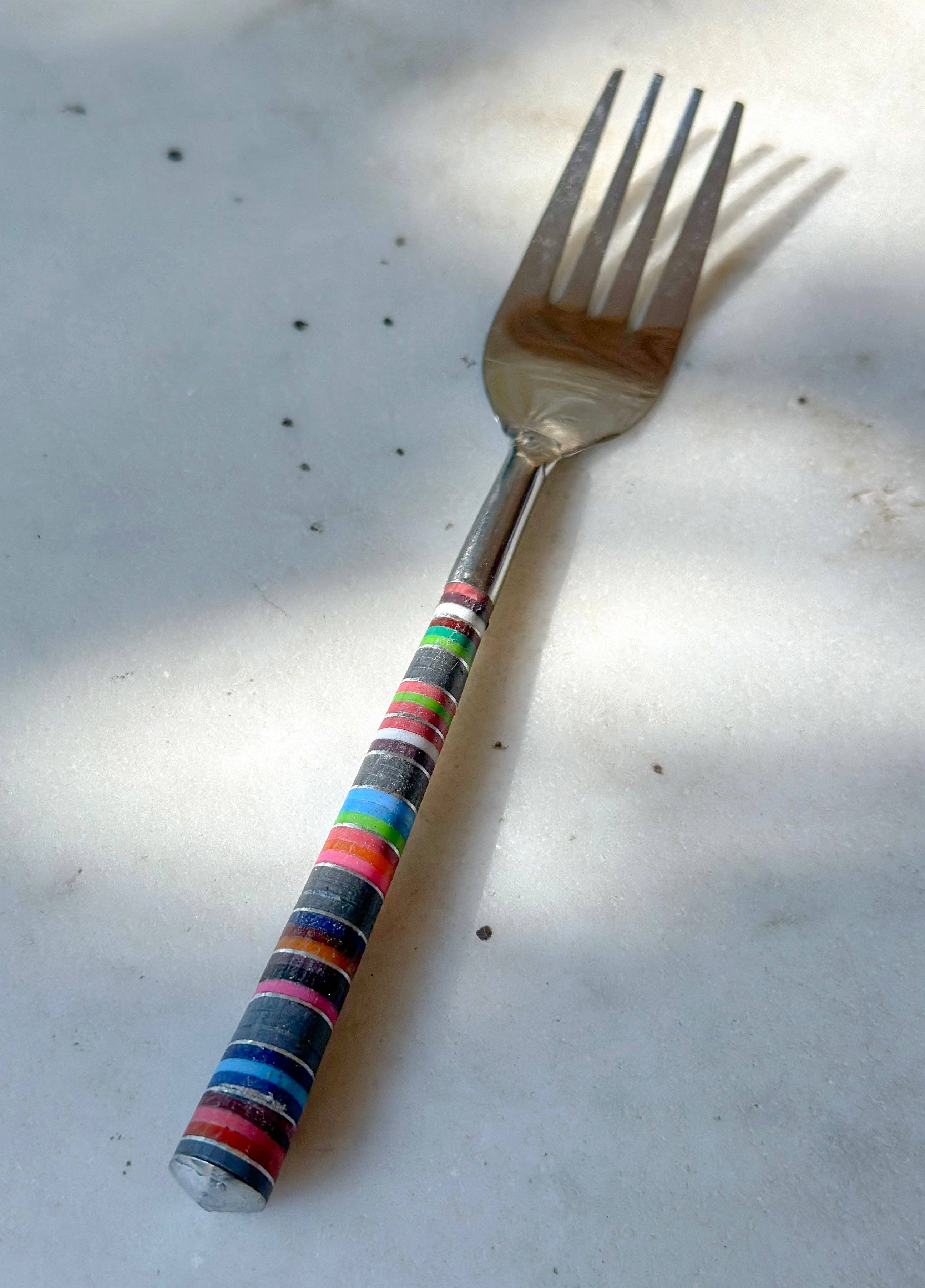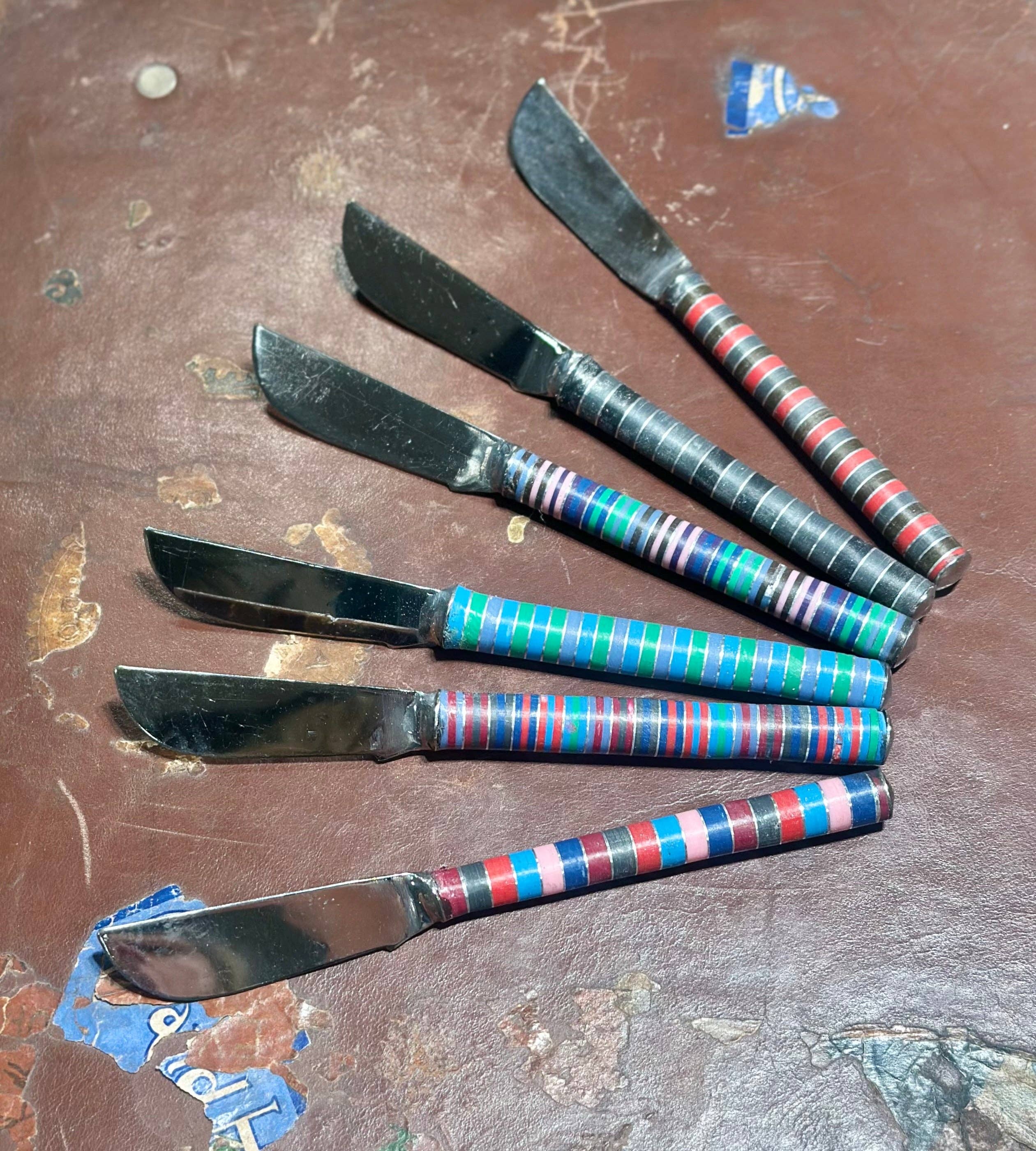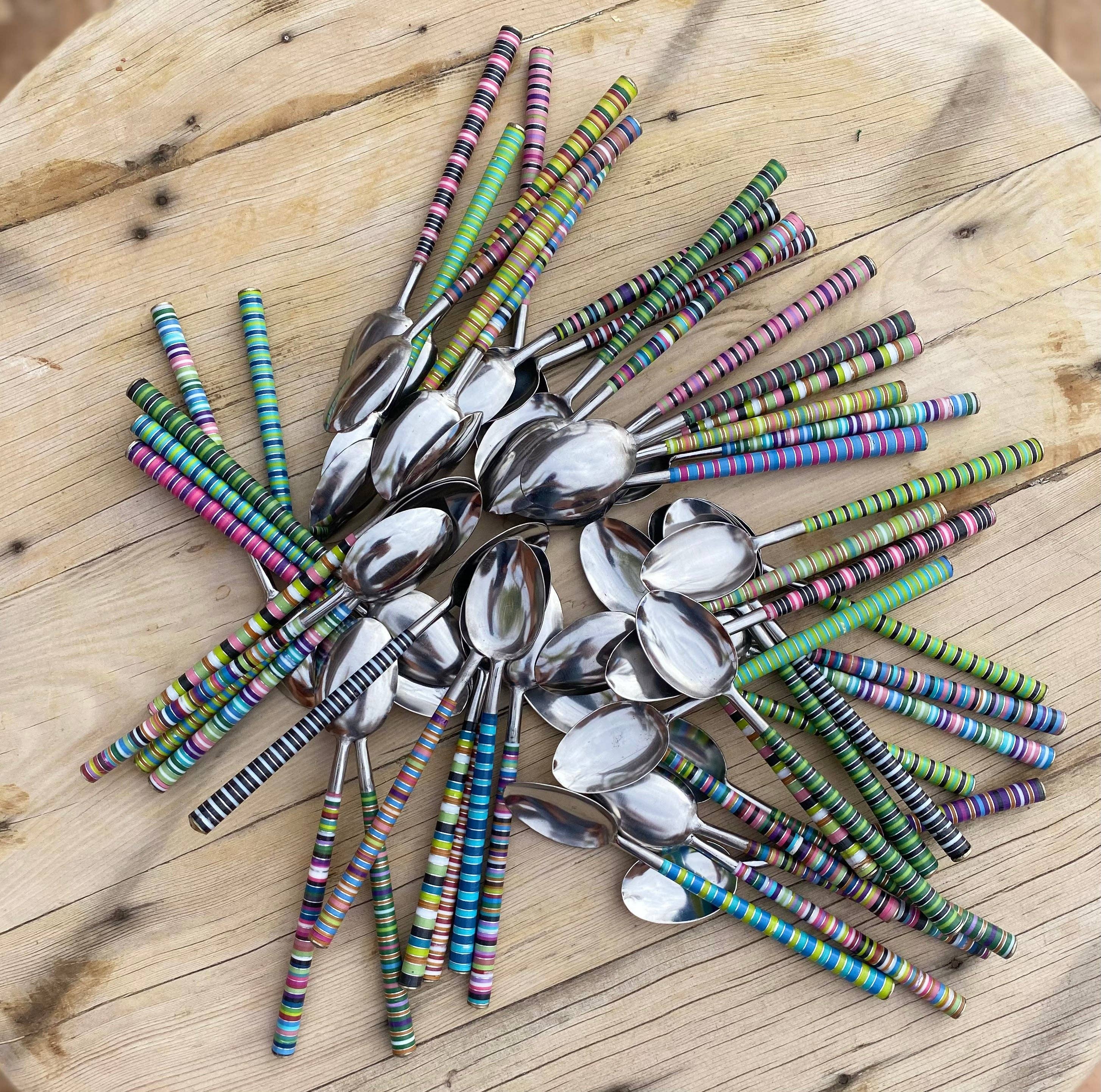 Cucharas beréber coloridas Escogidas y elaboradas a mano con amor en Marrakech, Marruecos, durante uno de nuestros numerosos viajes de compra a nuestro país favorito. Son perfectas para la presentación original de tu café o té diario. Estas icónicas cucharitas marroquíes de colores cuentan cada una con un mango de resina y metal a rayas, ligeramente diferente. - Los mangos a rayas son todos distintos. - Cada cuchara mide aproximadamente 12 cm. * Fabricado en Marruecos * Cada pieza es única * Mezcla multicolor a rayas * Lavar a mano únicamente El mango está compuesto por varios anillos de resina de colores. El metal es maillechort, una aleación de cobre, zinc y níquel que se asemeja mucho a la plata. Si prefieres un color (combinación) específico, no dudes en enviarnos un mensaje privado o especificar tus deseos al hacer el pedido.