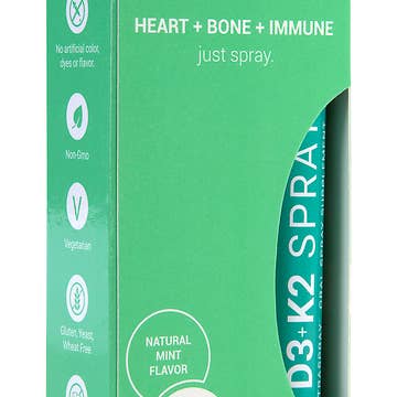 SpectraSpray™ Vitamina D3+ K2 es un suplemento de spray oral vegetariano fácil de usar que apoya los niveles saludables de vitamina D para una óptima función inmune, cardíaca, ósea y sistema nervioso. La absorción directa le da resultados rápidos. Llévalo en cualquier momento y en cualquier lugar sin necesidad de comida o agua. 2500 UI D3 con ingrediente de alta calidad, MENAQ7 forma de K2 para asegurar la absorción. • K2 apoya la absorción adecuada de vitamina D y calcio en los huesos •Protege la calcificación de las arterias de la ingesta de calcio • Salud ósea • Función muscular • Salud del corazón • Salud mental, sistema neurológico y endocrino • Apoya un sistema inmunitario normal. • Soporta un peso saludable. • Apoya la reducción del dolor Apto para pacientes diabéticos y bariátricos. Cumple con la TSA. Sin azúcar, sin gluten, sin lácteos. Sin aglutinantes, rellenos o alérgenos. No transgénicos. Fabricado en Estados Unidos. 30 porciones | 240 sprays | 8 pulverizaciones cada una.