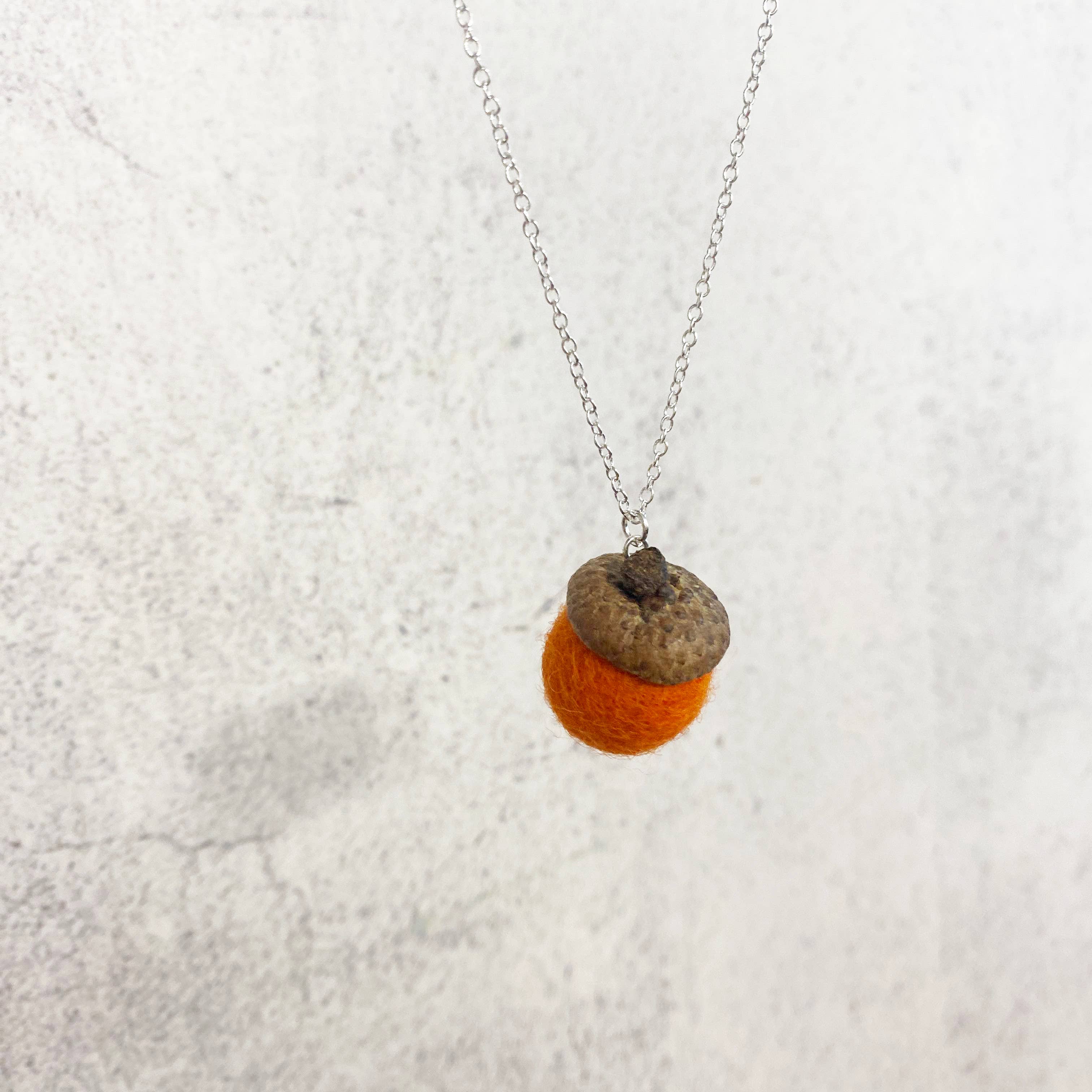 ¡Por fin! La última incorporación a nuestra adorable colección de bellotas de fieltro está aquí: ¡joyería de bellotas de fieltro! Hecha a mano con fieltro de lana 100% y auténticas cúpulas de bellota. Ensartada en una cadena chapada en plata de ley que mide 22" con un cierre de langosta. La bellota de fieltro en el collar tiene el mismo tamaño que nuestras mini bellotas, 3/4". Este es un tamaño más pequeño que nuestras bellotas de fieltro regulares y es perfecto para una joya que hará una declaración sin ser demasiado grande. Disponible en 12 colores diferentes y con pendientes a juego. Se presenta en una tarjeta de pendientes de kraft reciclado.