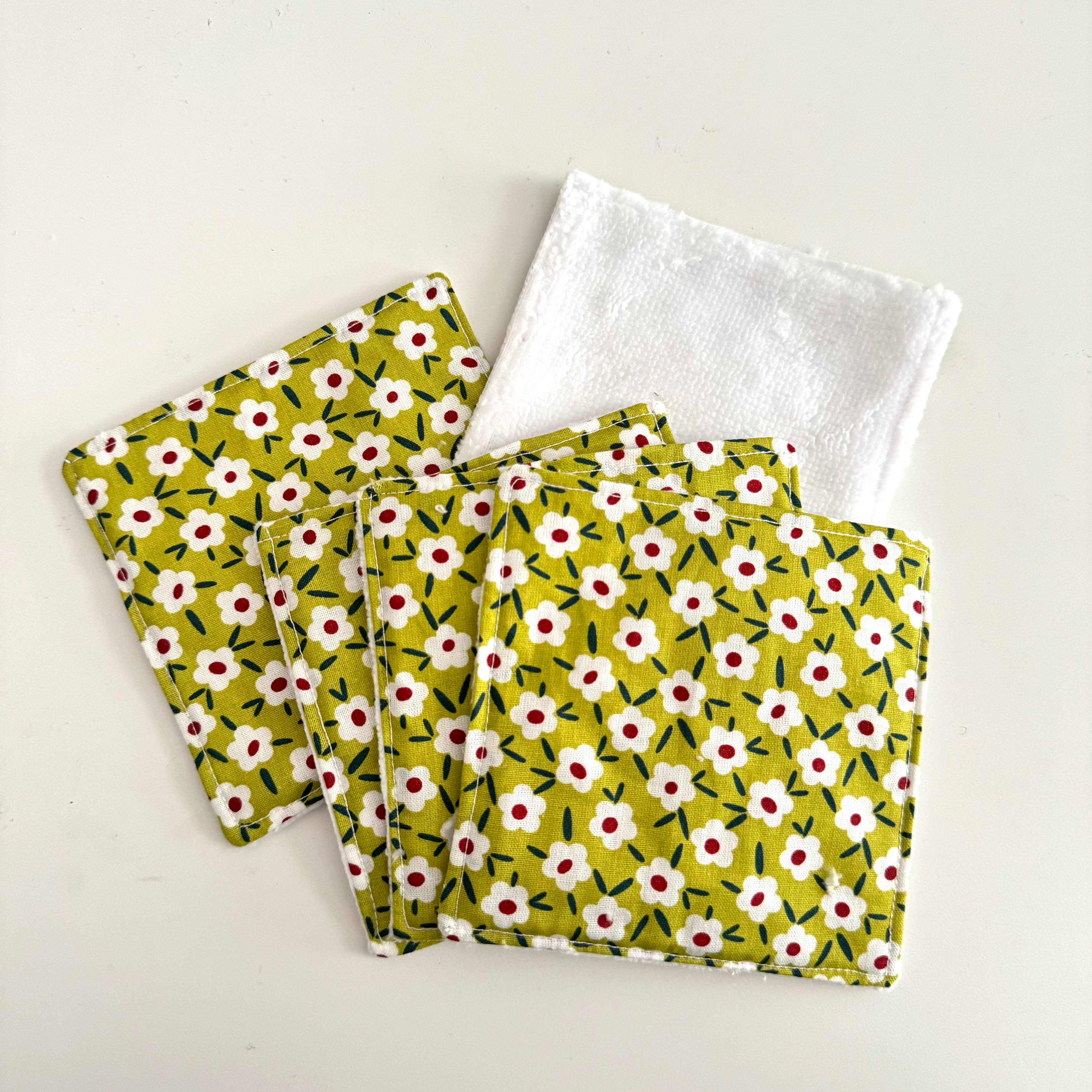 Toallitas lavables con un lado de algodón estampado y el otro lado de rizo de bambú 100 % orgánico. Son ideales para eliminar el maquillaje suavemente o para limpiar a tu bebé. Cada toallita mide aproximadamente 10 x 10 cm. Además, está disponible una cesta a juego para guardar las toallitas o cosméticos.