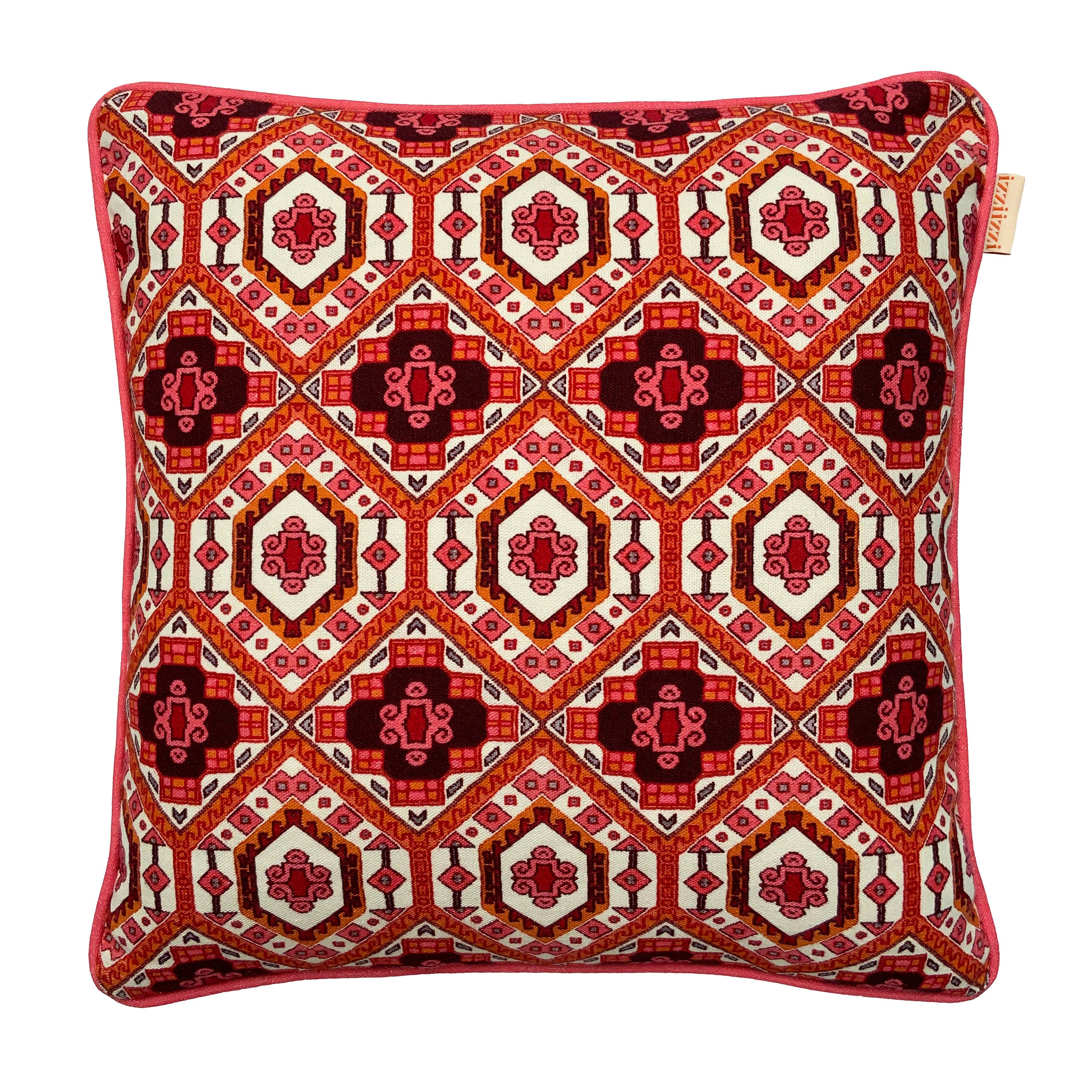 50 cm x 50 cm 100% lino relleno de plumas de pato, parte trasera de lino de avena con cremallera oculta. Instrucciones de cuidado: manipularlo con cuidado. Lavar únicamente en seco. Planchar en el reverso.