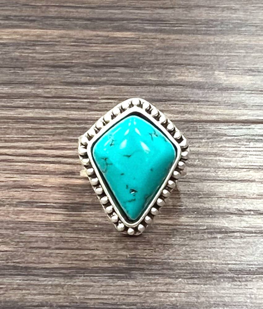 Anillo de turquesa blanca navajo de 1.5 pulgadas de largo, doble banda ajustable de latón * Ajustable expandiendo solo ambas bandas, no turquesa blanca * La piedra natural varía en tamaño, color o forma * Talla única, ajustable tirando o empujando una doble banda de latón * 1.5 pulgadas en aleación de metal, chapado en plata envejecida * 8 gramos de peso * Sin níquel, plomo ni cromo
