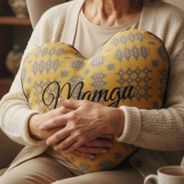 Nuestra colección de diseño de mantas de tapiz galés bordadas, hechas de una mezcla de algodón orgánico y poliéster reciclado, cojines en forma de corazón que miden 34 x 35 cm, el relleno interior es de 16 pulgadas y la funda es de aproximadamente 15 pulgadas. Cada cojín está hecho a mano en Gales y se hace por encargo. Estos cojines también están disponibles en liso sin letras. Si no ve el texto que le gustaría, por favor póngase en contacto, ya que se pueden personalizar según los requisitos del cliente y también podemos suministrar solo las fundas de cojín a pedido.